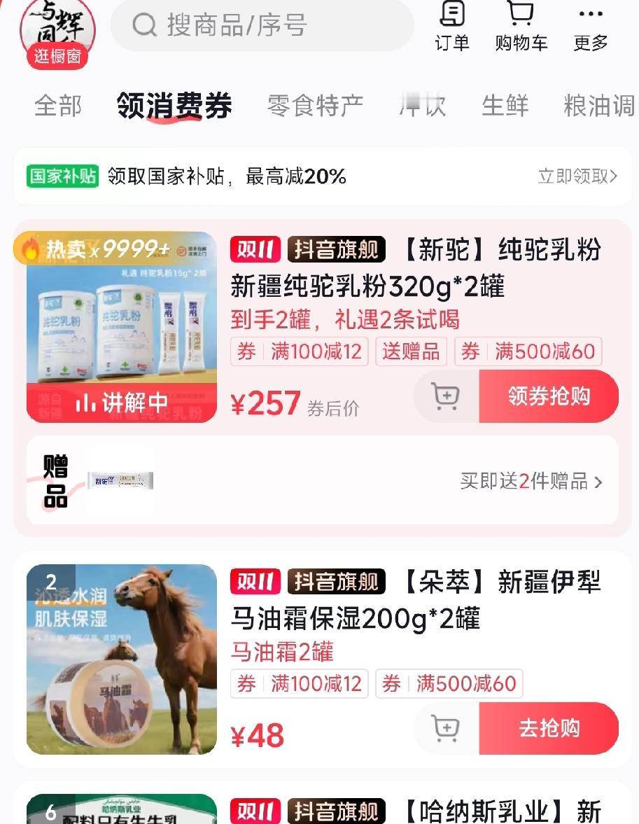 与辉同行的小伙伴们真是太贴心了!必须得夸夸他们! 他们专门把可以领券的物品做了分类,这样就更方便了大家去用券购买了。 你只要去小黄车里找到领券消费那栏,那里面的所有物品都是可以领到券的,这样大家就不会因为领券而错过了库存,也不会为了抢购而失去了领券的机会! 董宇辉 与辉同行 兰知春序 盼盼