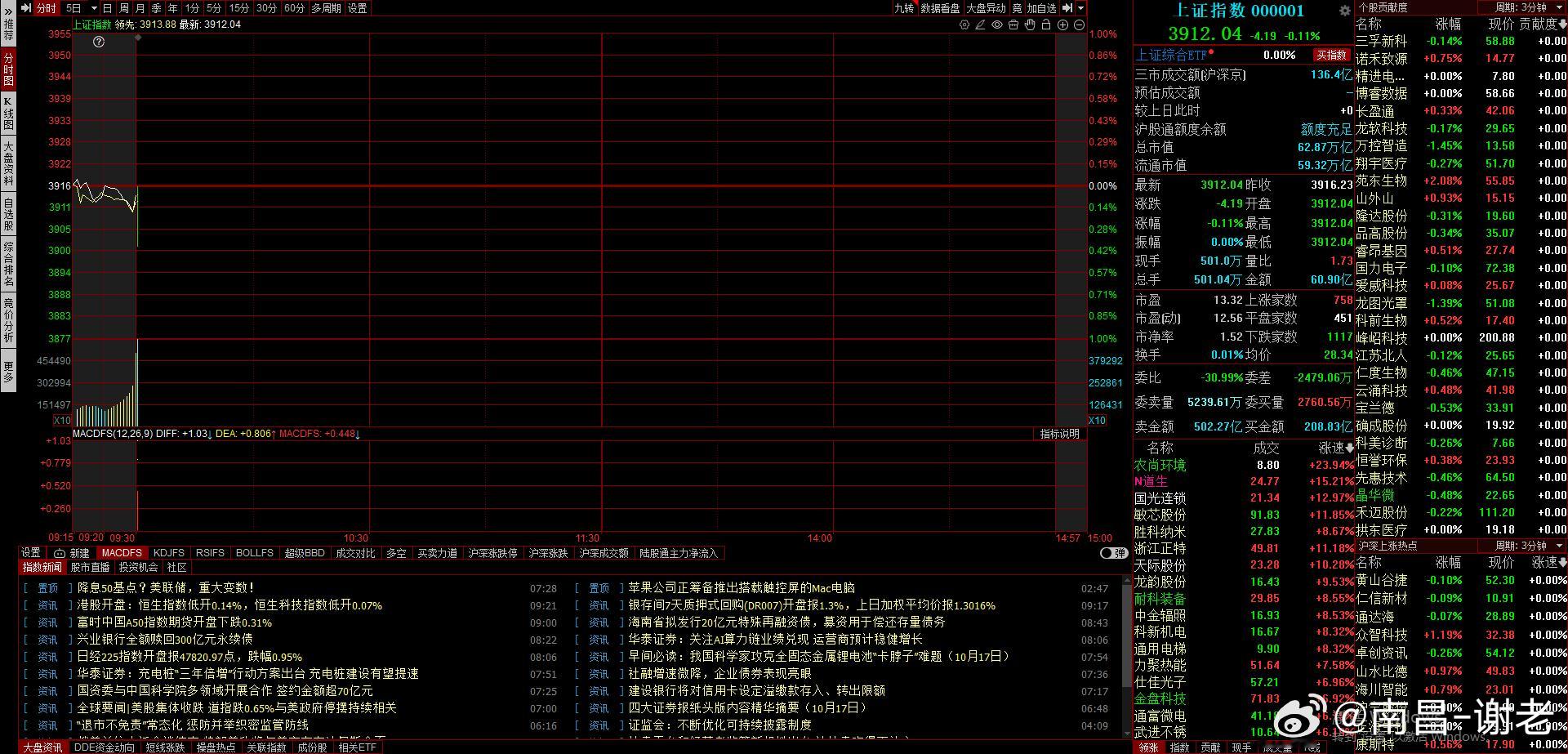 开盘还算可以,-4.19,没有很大分歧,看能不能承接住A股 ​​​