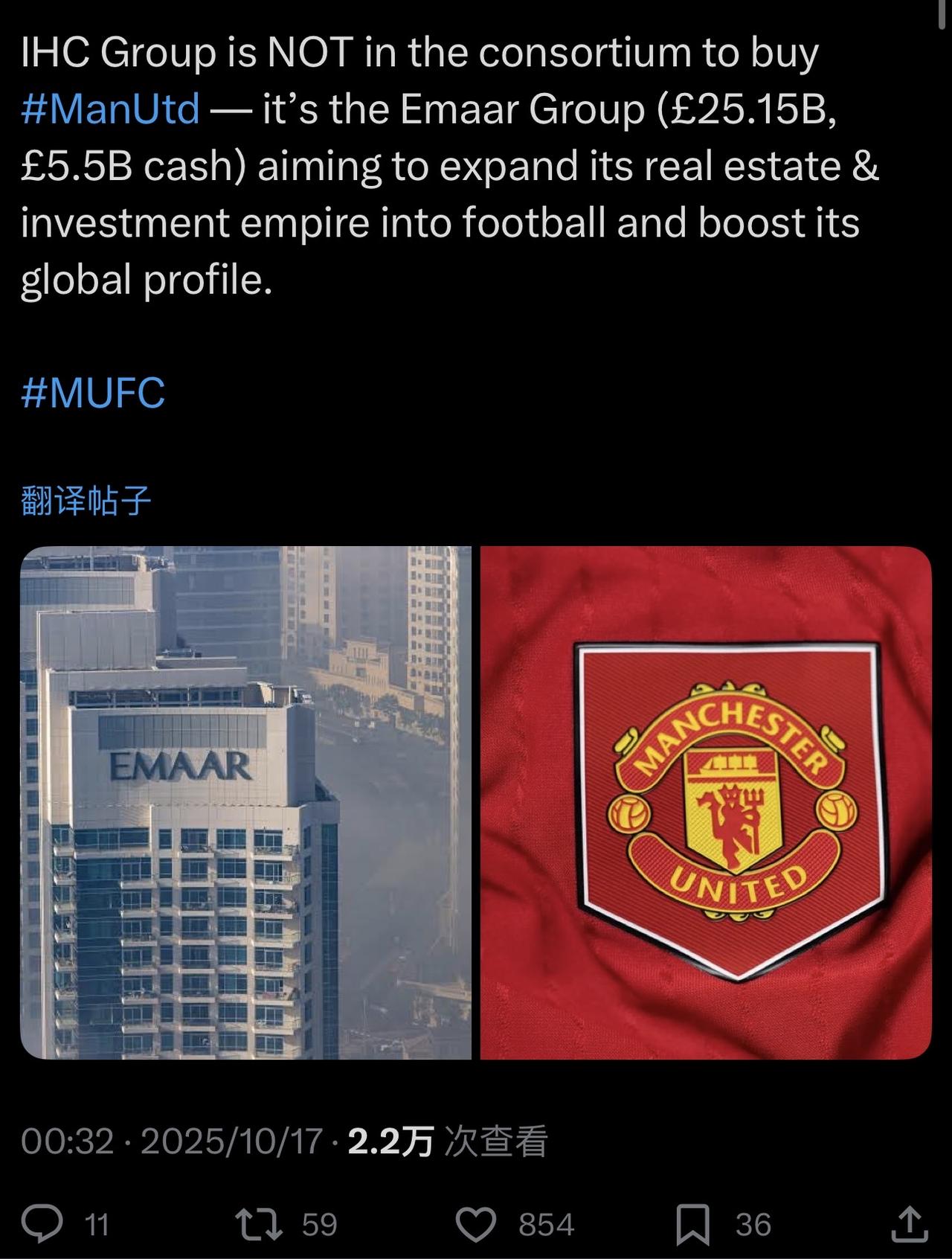 自媒体们,你们就可劲的编吧[呲牙] 🔵一个说: 🔴在阿联酋,有一家公司参与了曼联国际控股公司(IHC)的谈判。他们正在就组建一个未来在阿联酋运营的财团进行谈判。 🔵另一个就说: 🔴IHC 集团并不在收购财团ManUtd中,而是 Emaar 集团 (251.5 亿英镑,55 亿英镑现金),旨在将其房地产和投资帝国扩展到足球领域并提升其全球形象。 🔵阿联酋有挺多财团的,够你们编好几个月故事的[呲牙][呲牙][呲牙]