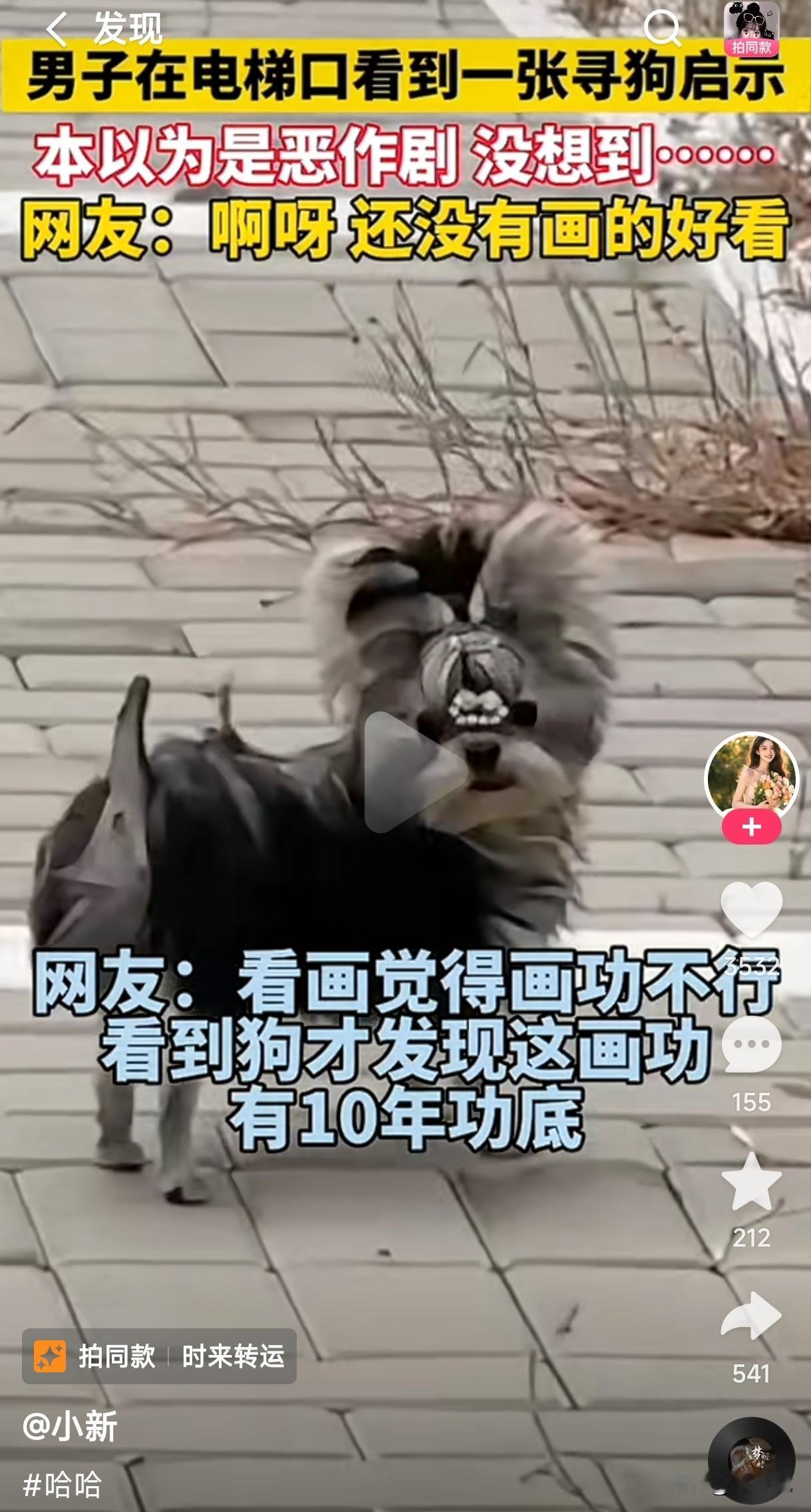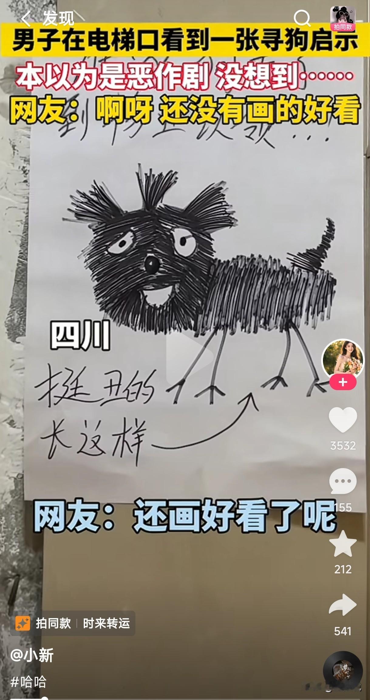原来真有长相很丑的狗。 男子在电梯口看到一张寻狗启示,以为是那个业主恶作剧闹着玩