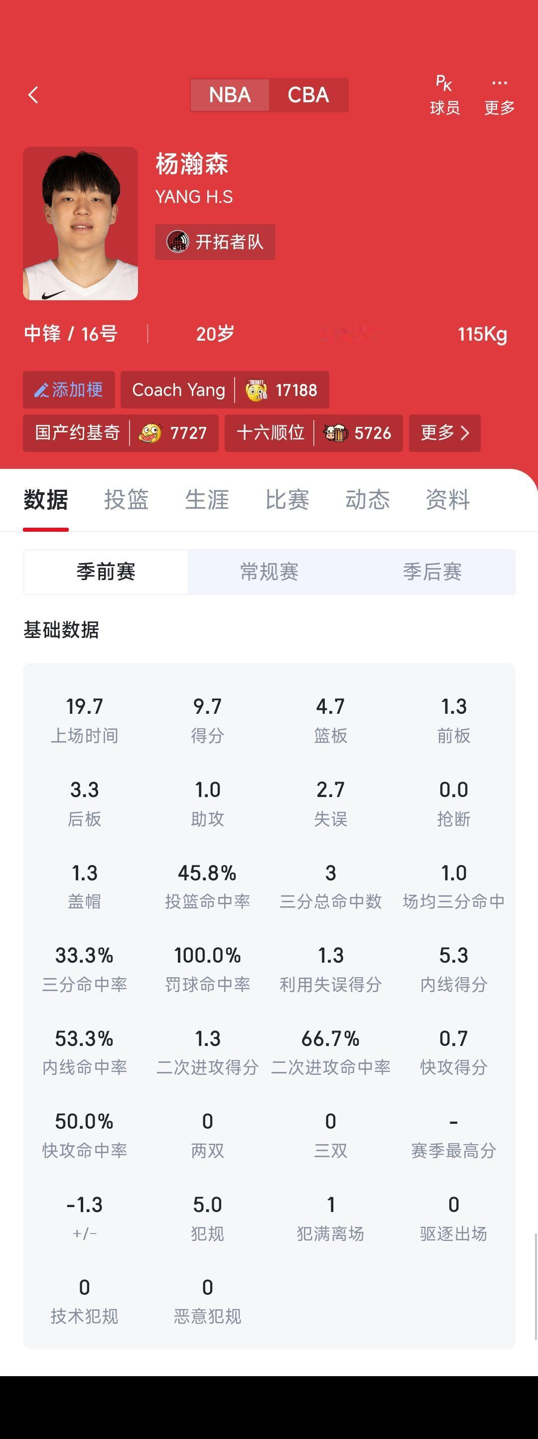 杨瀚森的四场季前赛比赛结束,大家满意吗? 场均9.7分,4.7篮板,命中率45.8%,三分命中率33.3%,罚球100%。 我认为这数据拿到常规赛,对于一名中等级别新秀很优秀了。 首个赛季10分5个篮板,未来每年都有进步,这是中国球迷对他的期待。 至于开拓者成绩好不好,无所谓,上赛季西部12,进不进季后赛不关心。[灵光一闪]