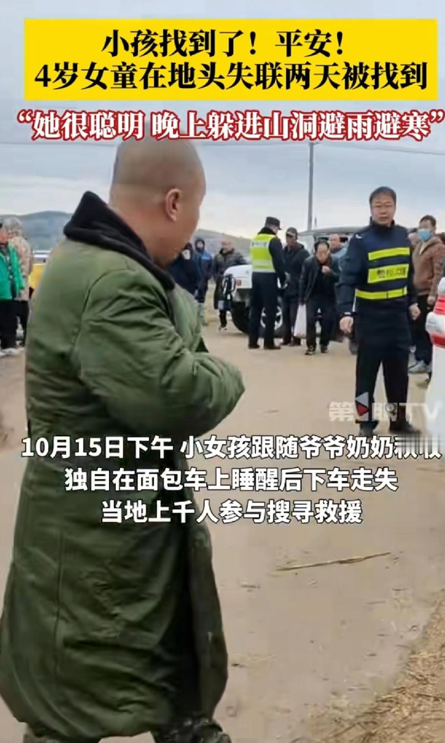 找到了!辽宁4岁女童丁一,找到了!一切“平安”10月15日在建平县黑水镇大营子村二分地地头失踪。 当地警方、政府人员、救援队和村民上千人齐上阵,用了无人机搜寻,终于在10月17日把她平安找到。 围观人员:她很聪明,晚上躲进山洞避雨避寒! 面对搜救人员,小女孩嘴里说着你认不认识我?爷爷第一时间紧紧抱着小女孩! 妈妈也紧紧抱着小女孩,嘴里说着再也不离开你了! 一直没有透露小女孩到底是怎么走丢的! 期待后续详细讲解!