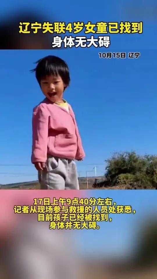 辽宁失联4岁女童已找到!43小时揪心搜救:那抹红衣,终究被善意照亮 “找到了!