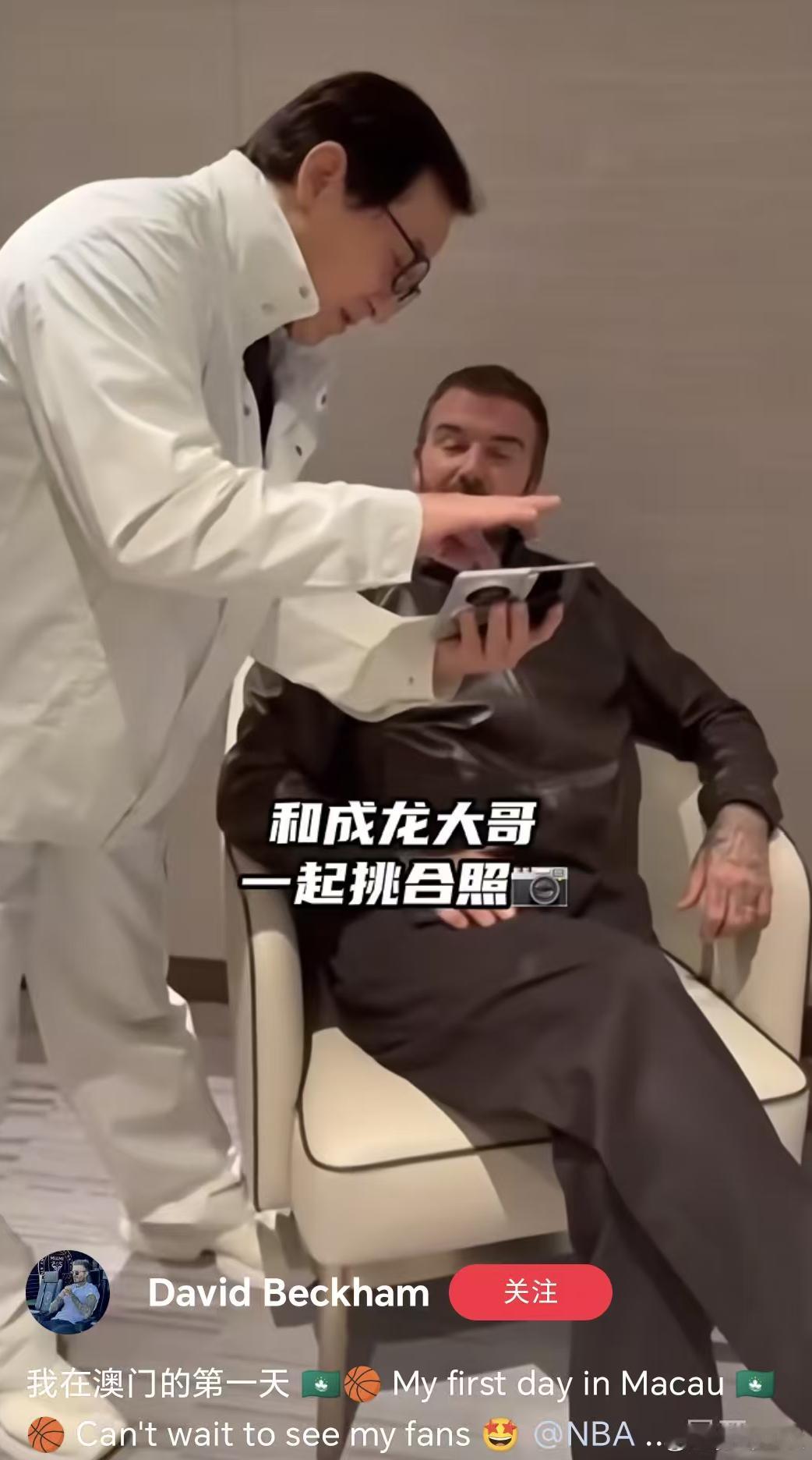 成龙和贝克汉姆用大折叠挑合照娱乐界巨头与体育界巨头又一次同框了,流量密码有了。成