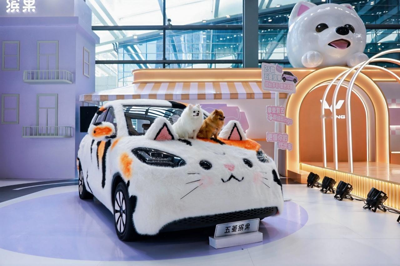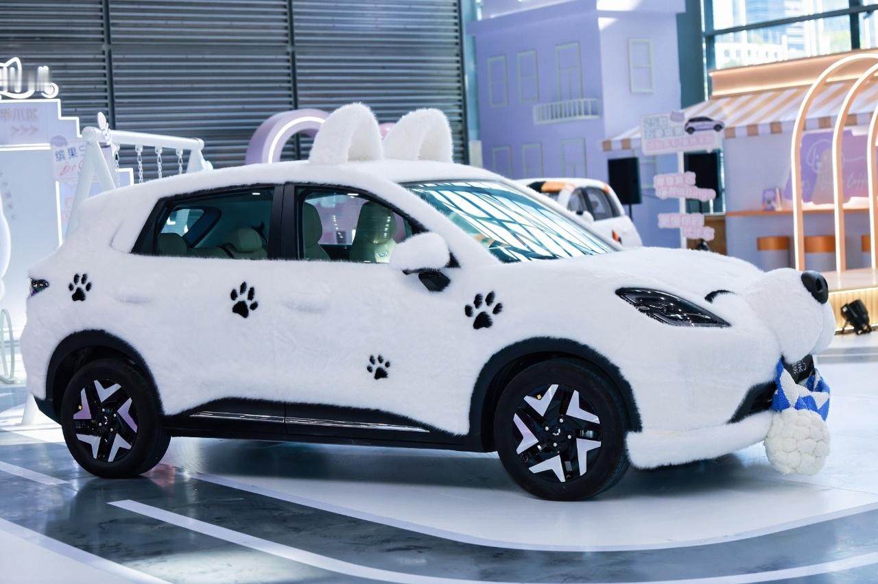 缤果家族亮相深圳宠物展,这车衣也太可爱了,后排1.2米的大通铺更是带毛孩子出门的绝佳搭子!缤果s