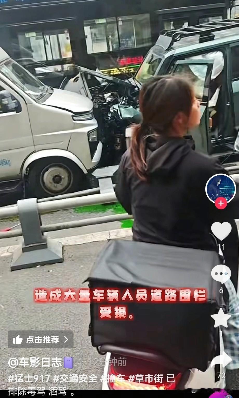上午成都市中心草市街附近发生了一起车祸,一俩猛士突然快速前冲,一瞬间造成八车相撞