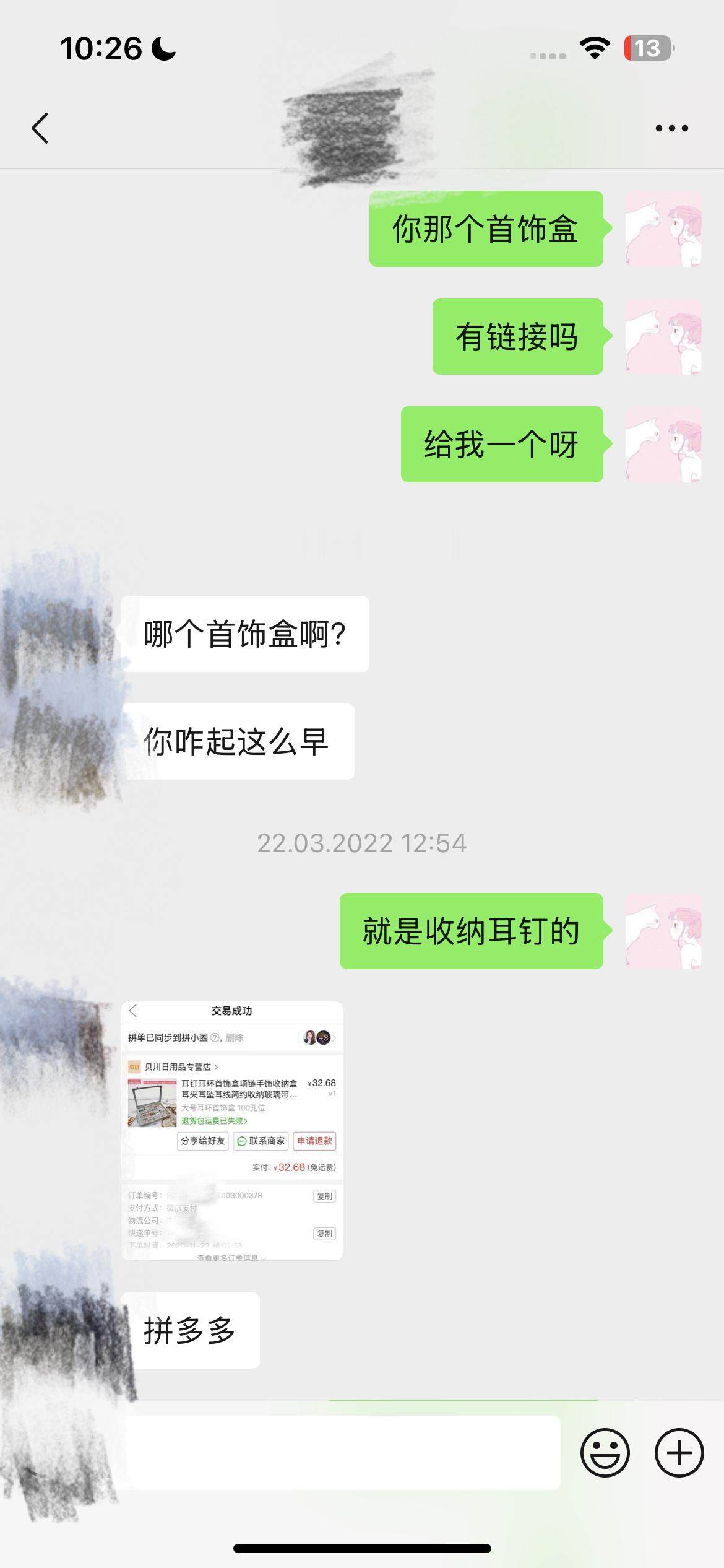 想到这顺便看了下聊天记录,感觉一开始大家都有拼多多羞耻症,但21年22年开始,大家就很自然的互相分享起了拼多多🔗,大大方方地互相种草。