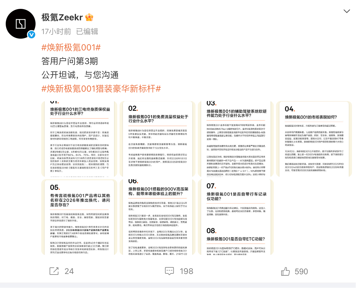 品牌与用户的关系,恰似人与人的相处,而真诚,永远是穿透人心的必杀技~当你发现,自己的一句话能被品牌郑重拾起、认真响应,那份被珍视的尊重感,便会自然沉淀为好感,凝结成忠诚;极氪近期的转变,正是在践行这份“情绪价值”的传递——这种以真诚沟通筑牢的情感联结,远比任何冰冷的营销话术更具打动人心的力量极氪积极回应用户获好评极氪沟通方式变化引关注