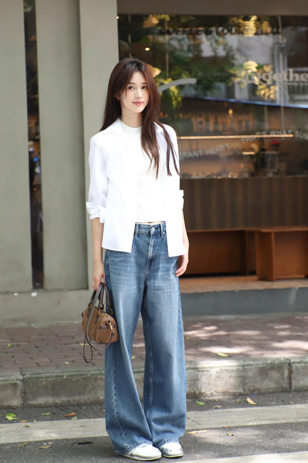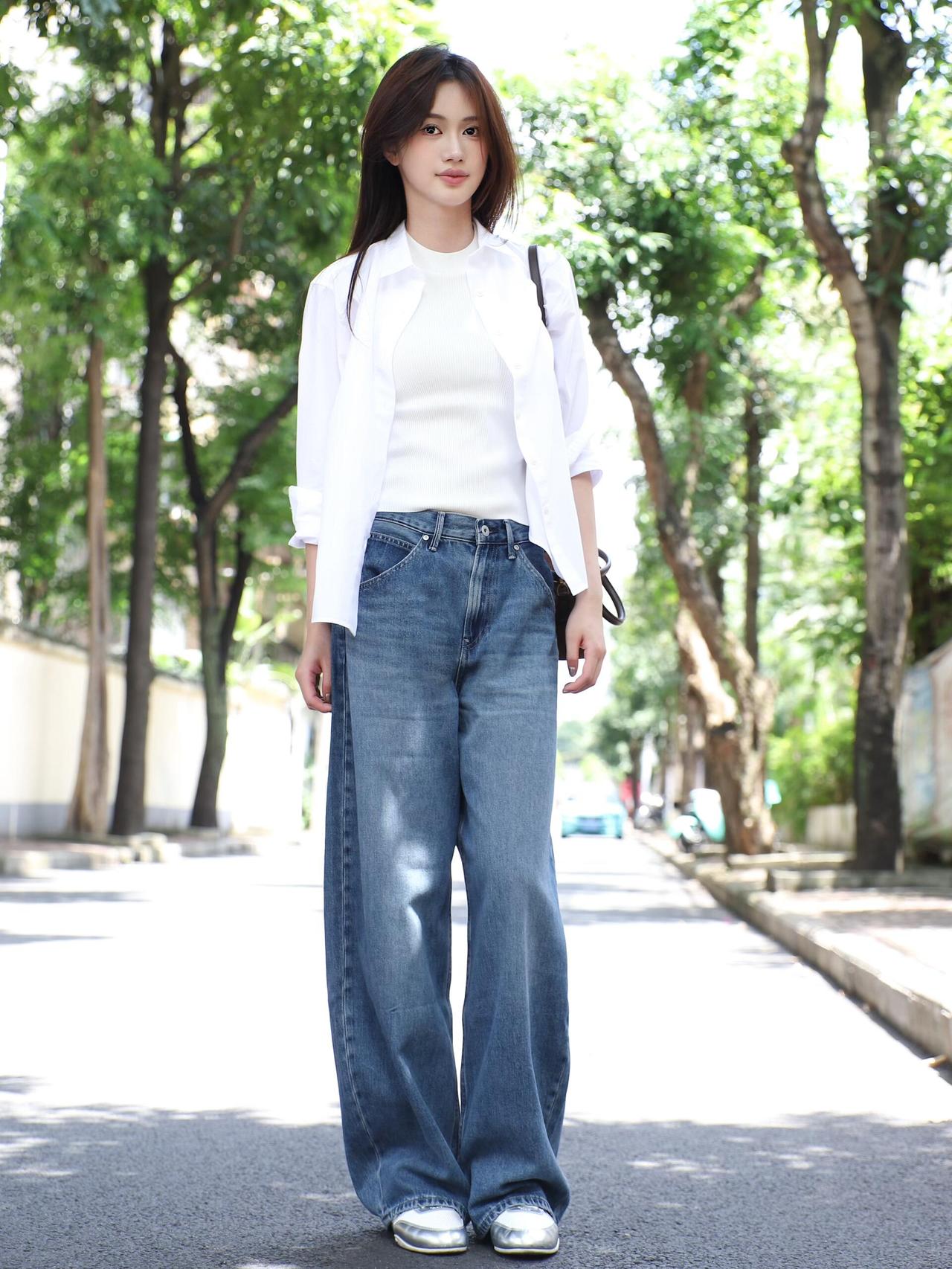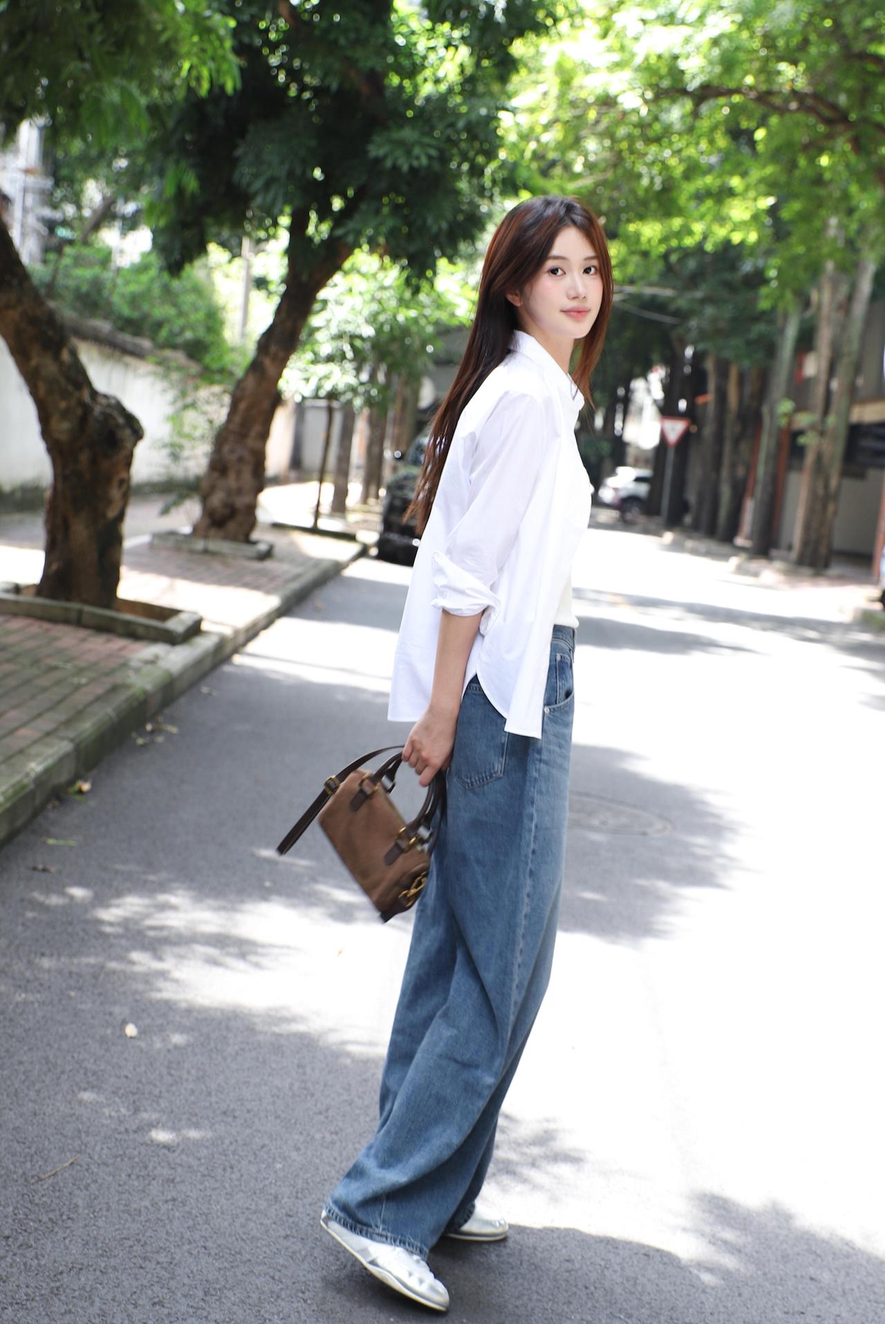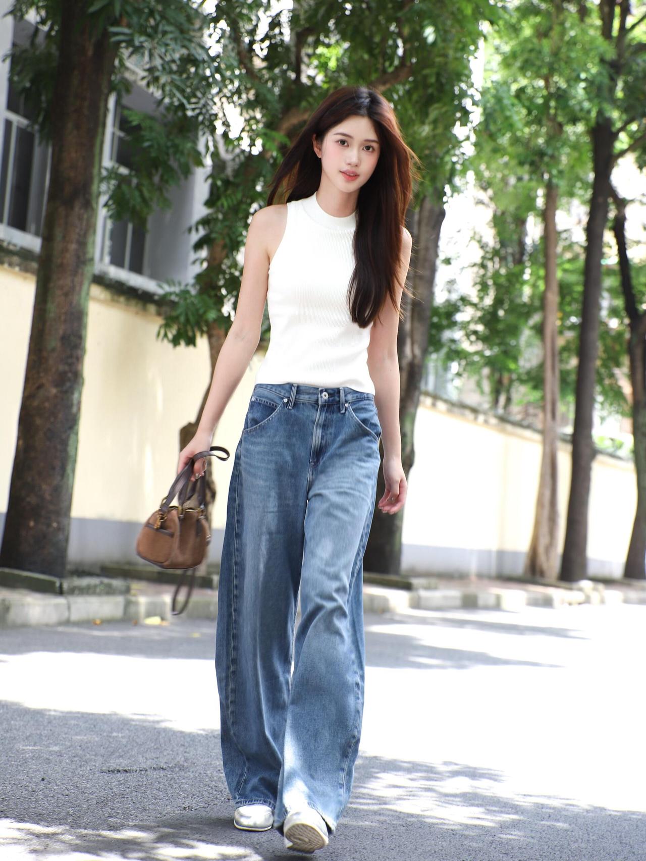 慵懒风穿搭指南白色背心+宽松牛仔裤轻松自在随性穿搭