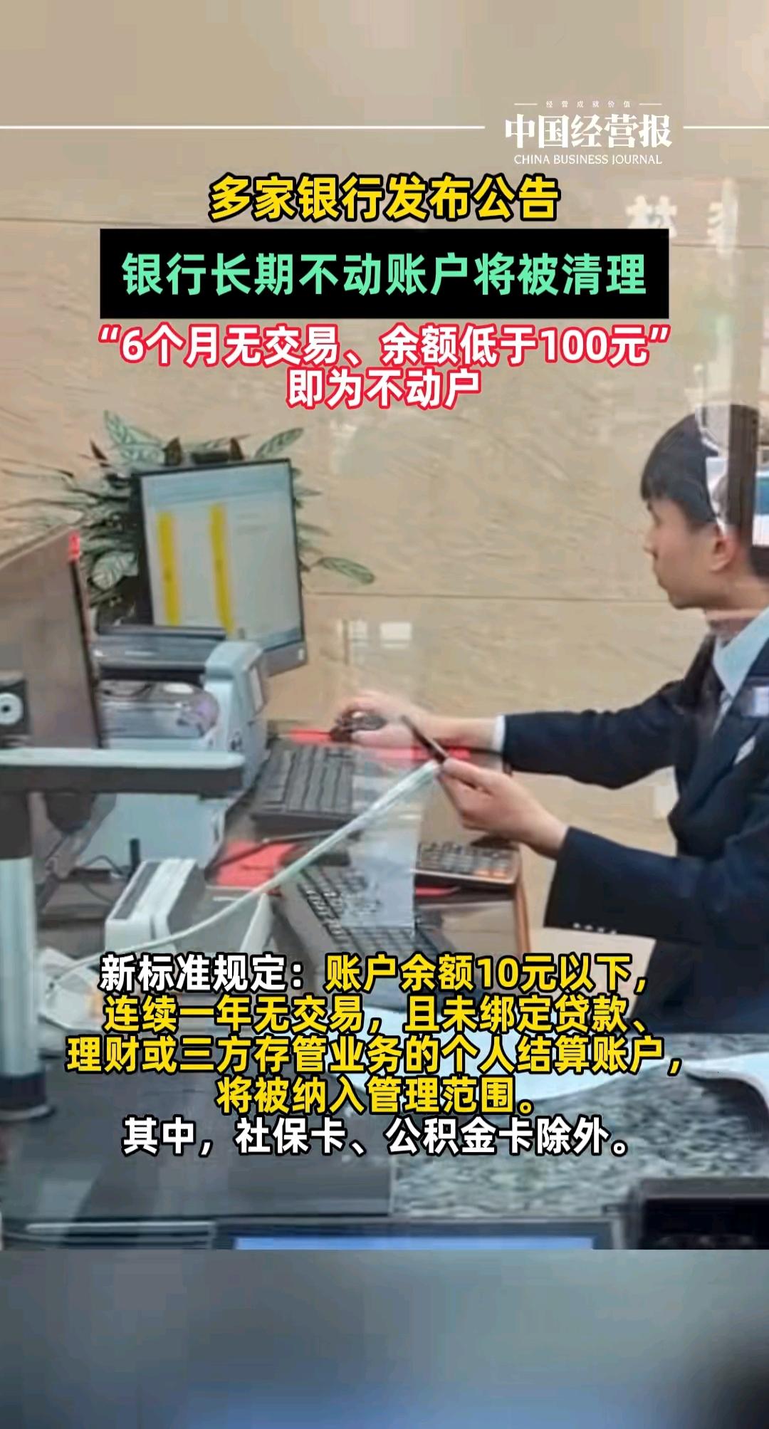 银行卡里有钱也可能被清 社保卡公积金卡却能豁免 多家银行发公告 要清理长期不
