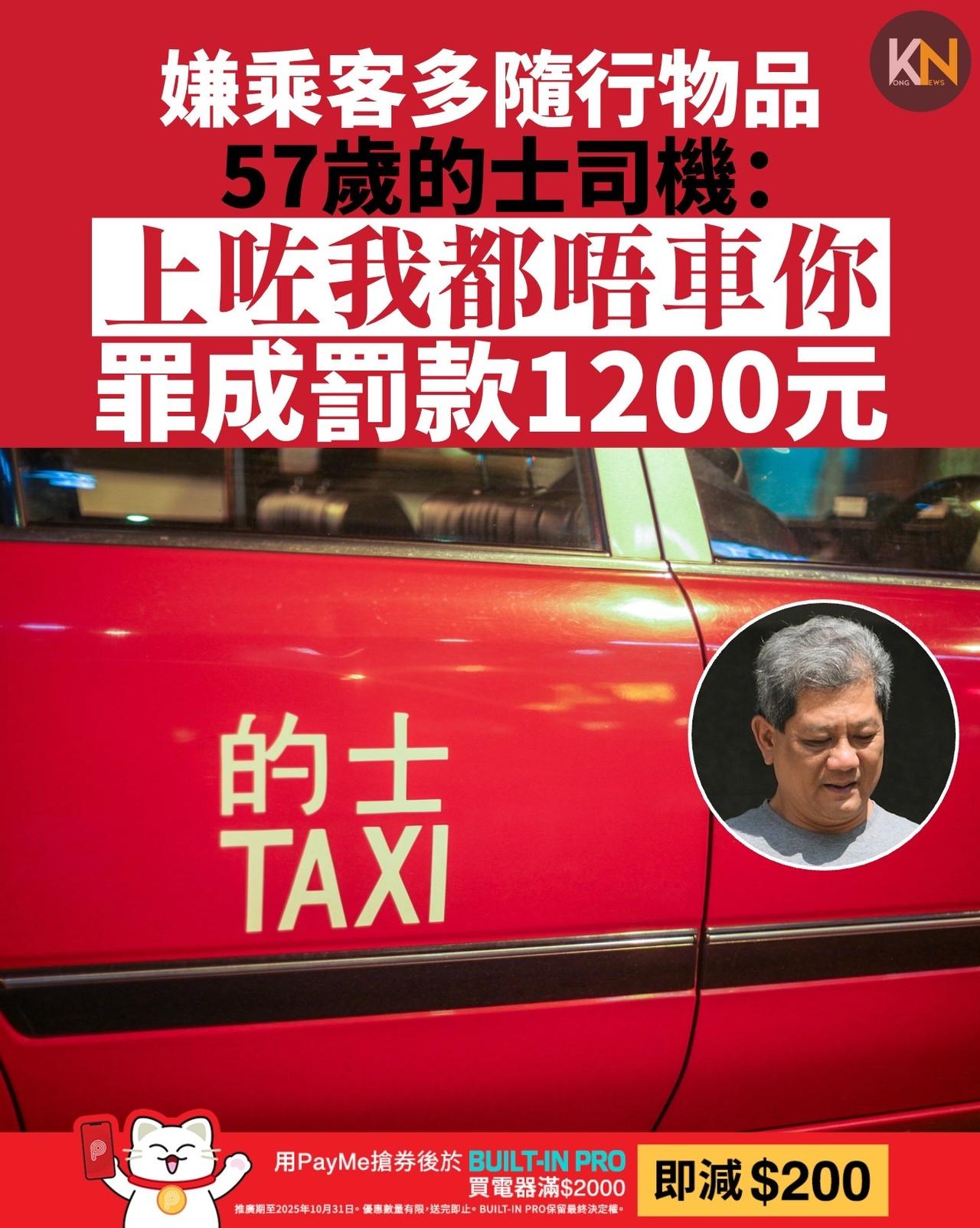 一名57岁的士司机去年于西贡拒绝接载一名女乘客及其外佣,期间更表示“上咗我都唔车你”,最终被控“的士拒绝租用”罪。 案件今日于九龙城裁判法院裁决,裁判官吴卓桦指被告说法不合逻辑,认为女乘客证供诚实可靠,裁定被告罪名成立,判罚款1200元。 案情指,被告胡建祥于2024年10月13日下午约5时47分,在西贡福民路的士站被一名胡姓女乘客与其外佣截车,准备前往清水湾住所。 期间被告多次质问她为何不乘搭新界“绿的”,又指其随行物品太多、应改乘客货车。当外佣准备将胶箱及晾衫架放入车尾箱时,被告突然猛力盖上车尾箱并说:“上咗我都唔车你。”女乘客最终下车,事后报警及拍下车牌。 被告辩称,当日女乘客曾尝试把物品放在前座,或会阻碍驾驶视线,否认拒载。但吴官认为,其说法与情理不符,指若女乘客曾遇空间问题,理应先查询车尾箱大小,而非改放前座。 吴官又指,被告在外佣仍在放置物品时便关上车尾箱,并以手机拍摄乘客,显示其当时并无意愿接载,裁定罪成。 判刑时,吴官考虑被告无犯罪纪录、属单一事件,判罚款1200元。