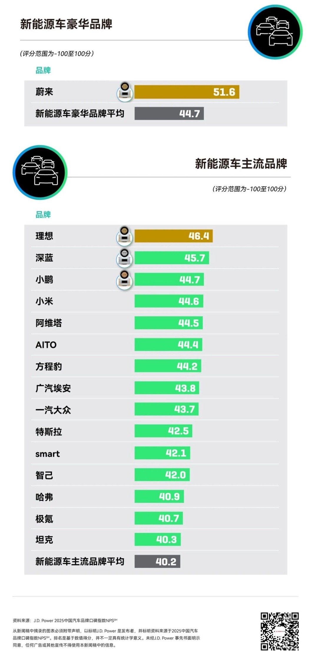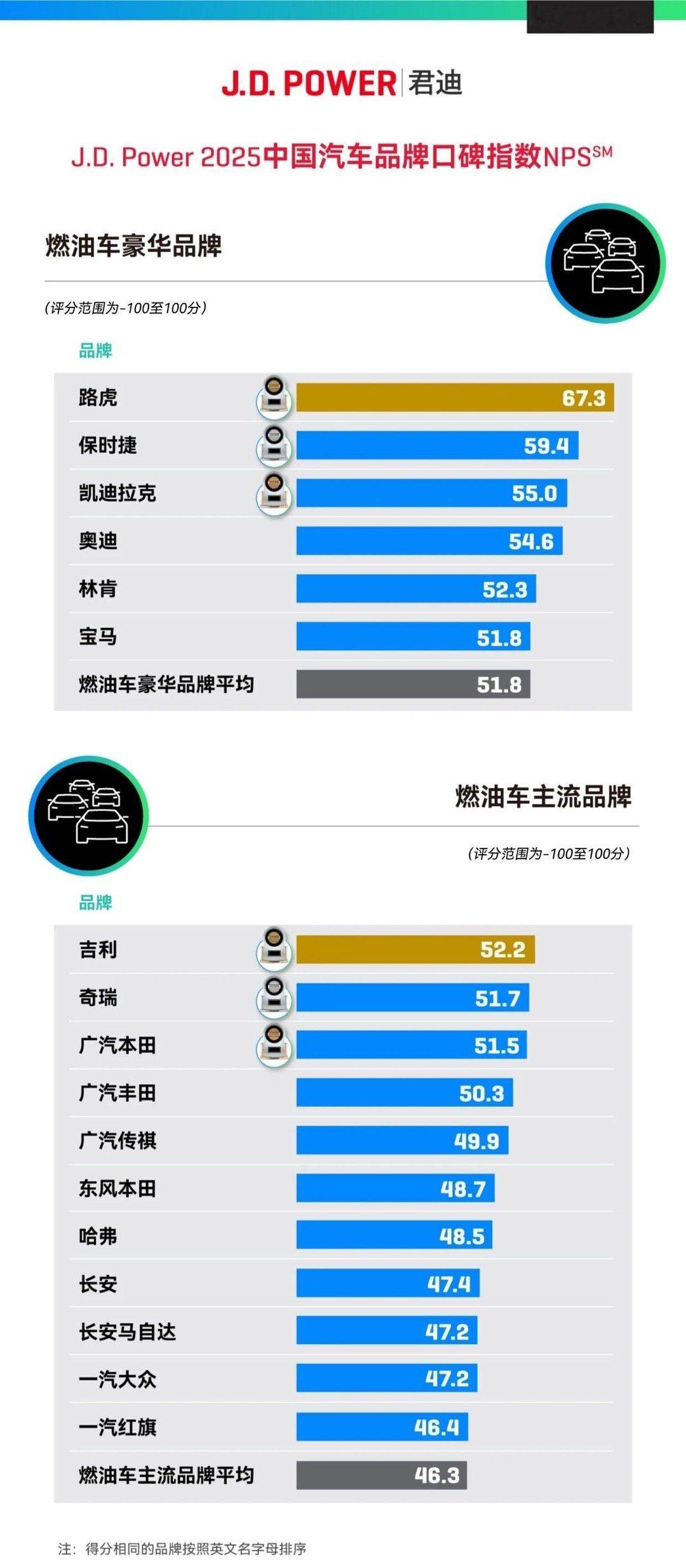 J.D. Power首次发布了2025年中国汽车品牌口碑指数(NPS)。