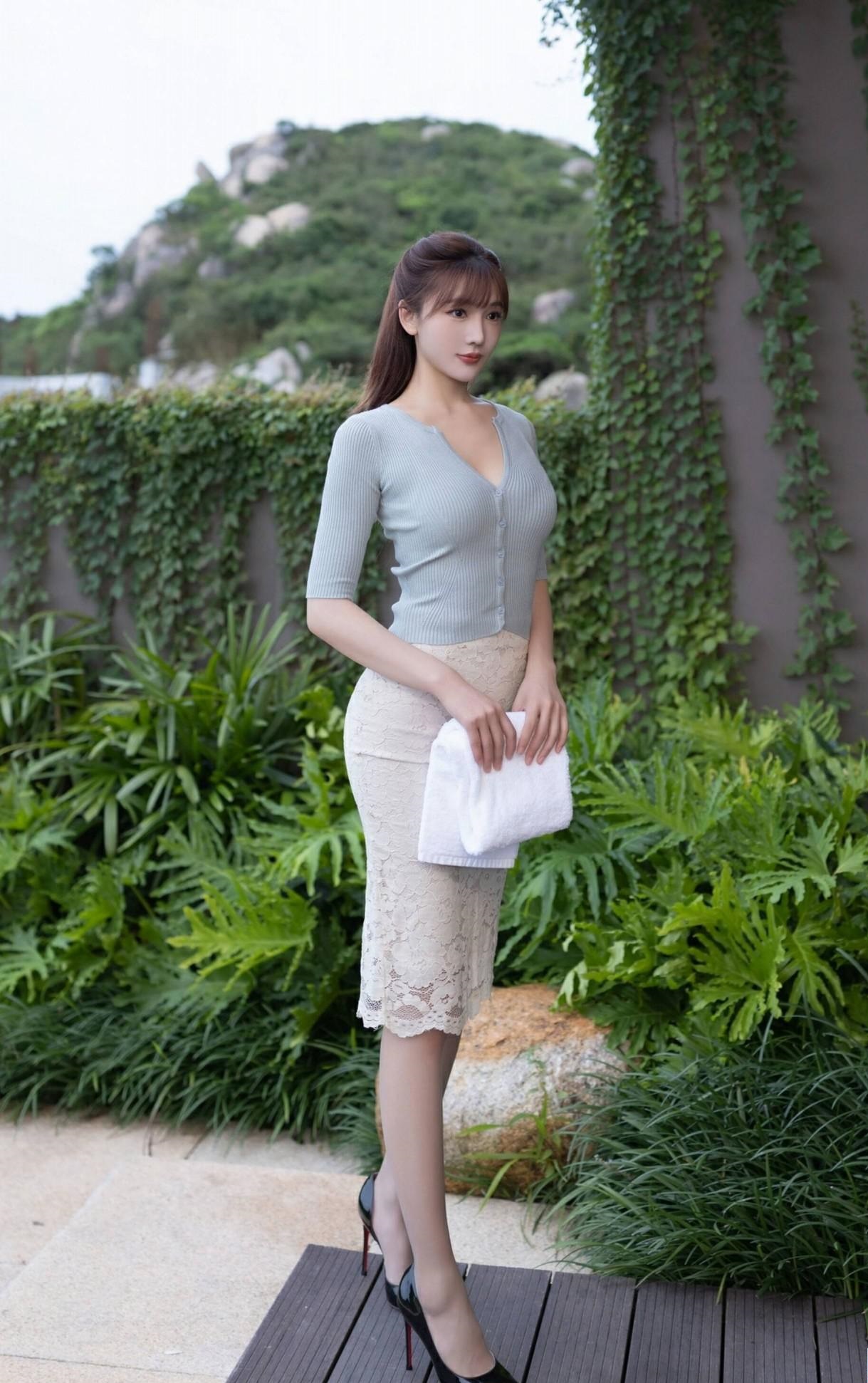 美女模特陸萱萱,轻熟风蕾丝半裙,穿出优雅女人味!