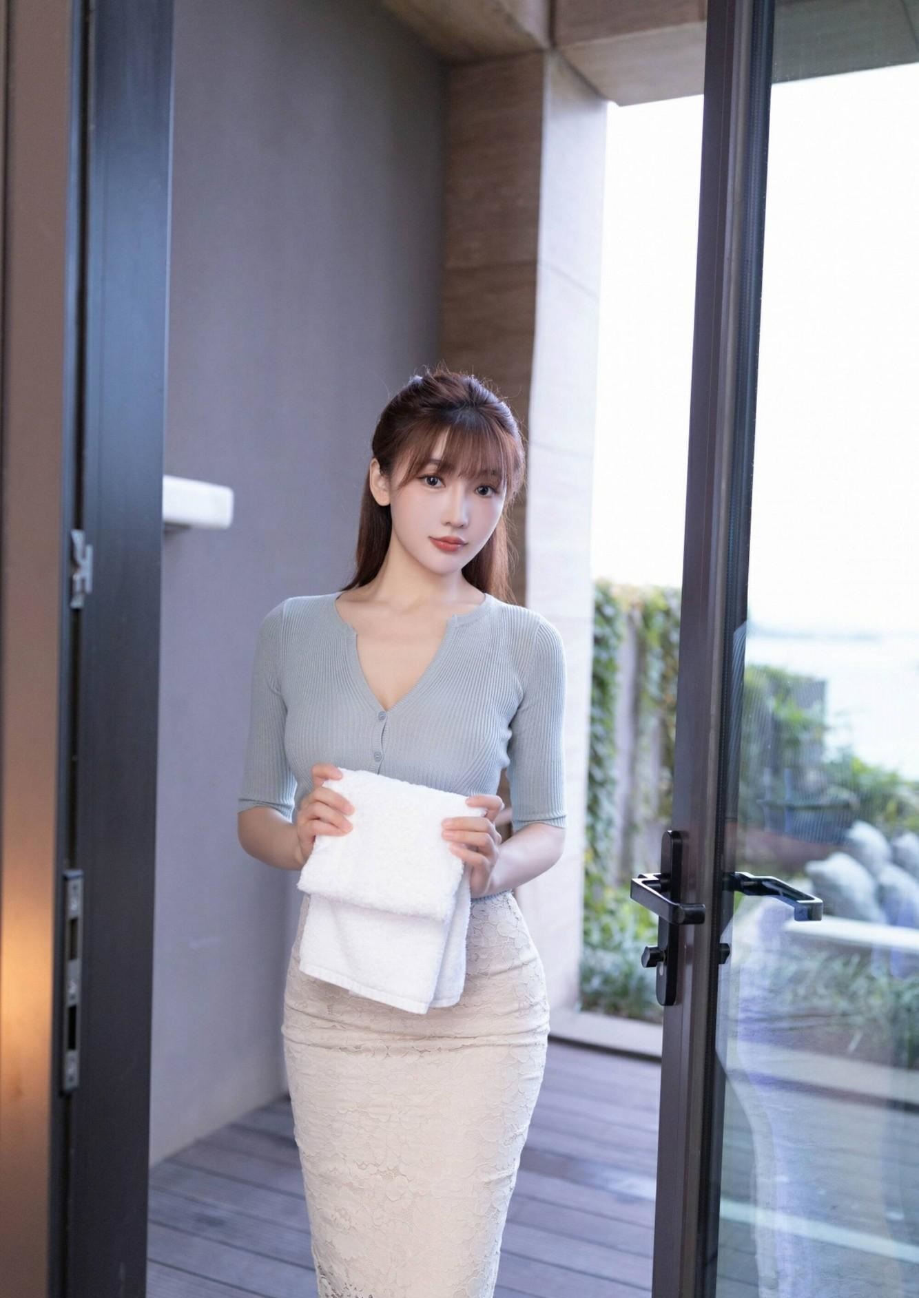 姐妹们,今天给大家带来一套超级优雅的轻熟风穿搭,绝对能让你在人群中脱颖而出!👀 这套穿搭的上衣是浅绿色针织开衫,简约而不失设计感,V领设计巧妙地拉长颈部线条,显得脸小又精致。中袖的长度刚好遮住手臂的肉肉,显瘦效果一流!💪 下装搭配的是一条米白色蕾丝半裙,蕾丝的材质轻盈又透气,走动间摇曳生姿,女人味十足!高腰的设计更是拉长了腿部线条,显得身材比例超级好。裙摆的开叉设计,增添了一丝小性感,走起路来若隐若现,超级吸睛!👗 脚上再踩一双黑色细高跟,瞬间提升气场,优雅又大方。手里拿一条白色毛巾作为道具,不仅实用,还增添了一丝生活气息,让整体造型更加生动。👠 这套穿搭无论是去上班、约会还是逛街,都能轻松驾驭。喜欢的姐妹们赶紧学起来,一起穿出优雅女人味吧!💃