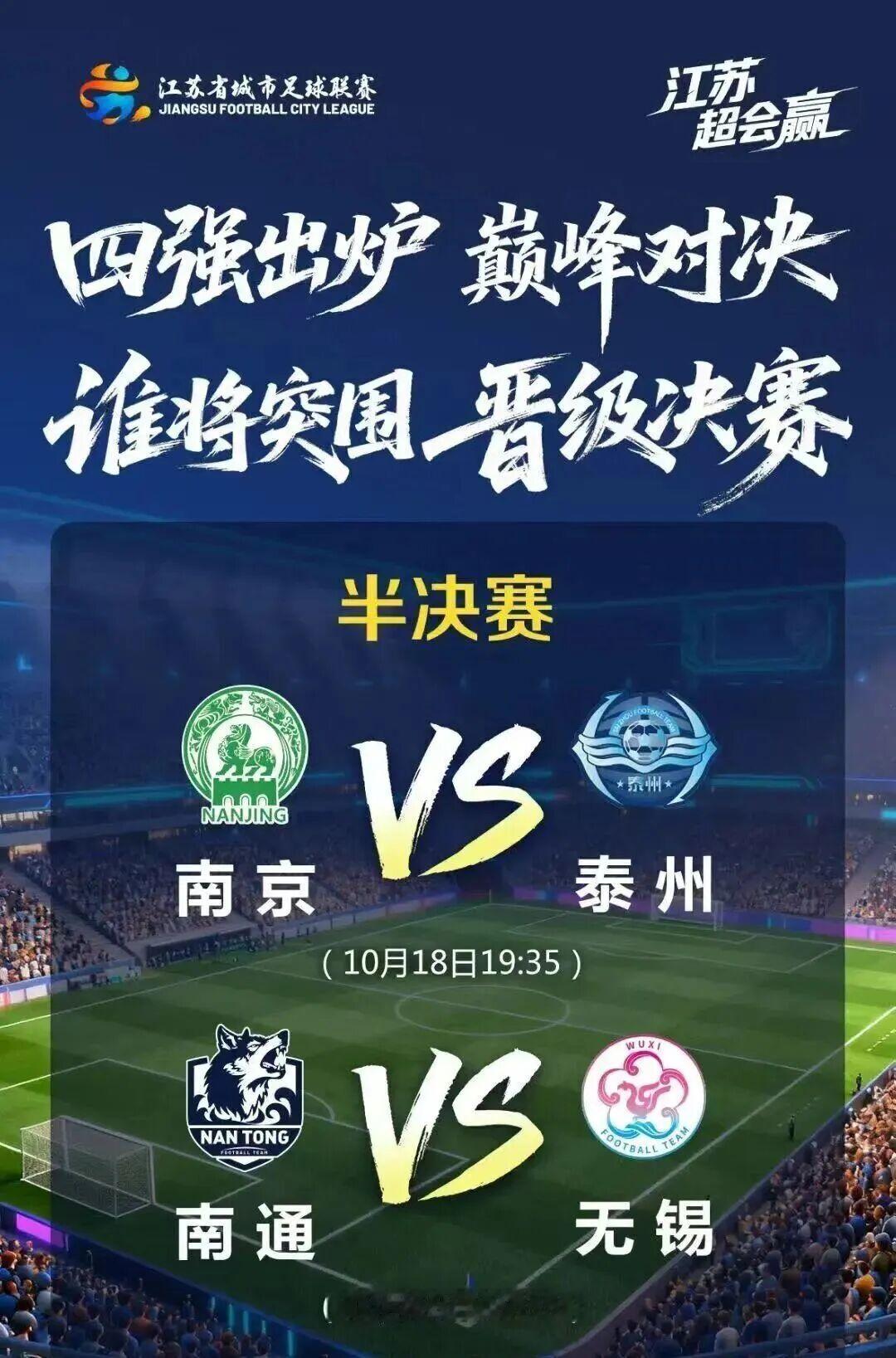 苏超半决赛周末即将打响,南京VS泰州这一场应该非常精彩,悬念要比南通VS无锡更大