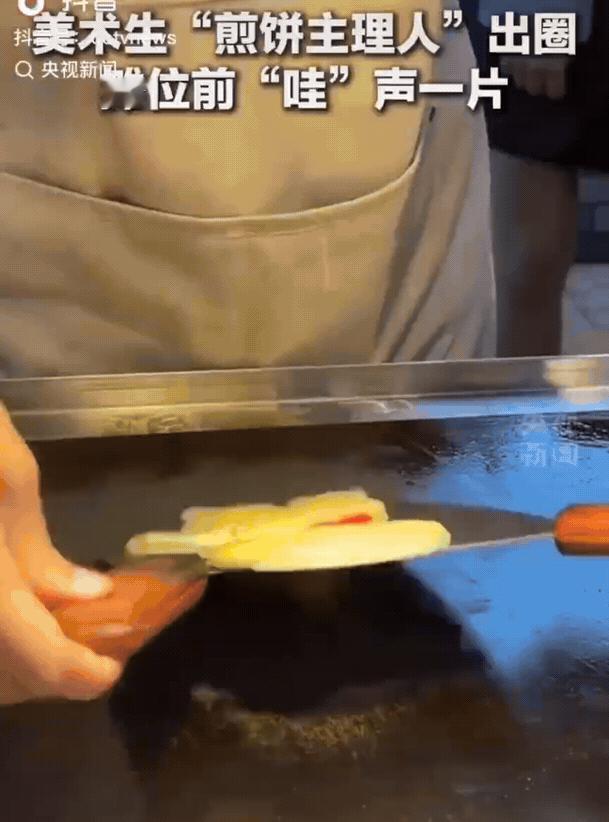 “火上央视新闻了!”四川成都,95后女孩摊煎饼火了。大家纷纷围观,煎饼一翻面,只听“哇”声一片。 95后女孩曾女士,是学艺术设计的。就想着将自己的绘画功底和大家喜闻乐见的煎饼结合一下。打造一款有趣独特的产品。 曾女士在家里进行了多次练习,手法熟练才去摆摊。卡通煎饼就是用各种颜色的面糊,把煎饼做成卡通图案。 先用黑色巧克力酱勾出轮廓,然后再填充颜色。当煎饼翻过来那一刻,一个栩栩如生的图案就出现在大家眼前。大家眼前一亮,“哇!”的惊呼起来。 煎饼图案还可以定制,按照自己喜欢的图案来做。追求潮流的年轻人,尤其是喜欢卡通的,都被吸引过来了。都想有一款属于自己,有温度的煎饼。 曾女士的摊位,每天都有许多人围观。大家都被这有颜值的煎饼吸引了。顾客尝了一下,味道也挺好的。 无论何时,创新都很重要。只要大家有新颖的产品,就有人愿意买单。 曾女士的卡通煎饼,因为需要绘画功底,所以复制起来难度很大。这就是她持续火爆的原因。 这也给学美术的人,提供了新的就业方向。可以用自己的绘画功底,来创新出独特的产品。