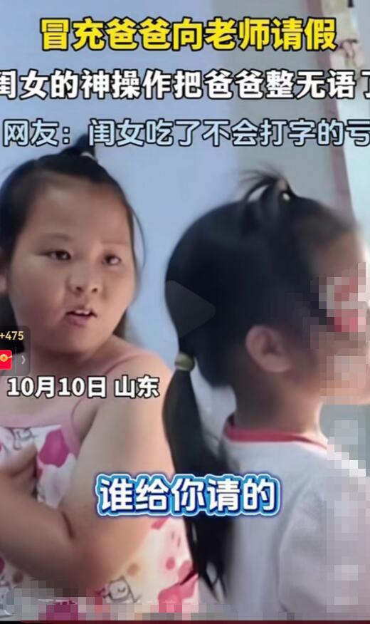 这事儿真是让人笑不活了。 山东有个小姑娘不想上学,又怕爸爸不答应,居然偷偷拿了爸爸手机给老师发语音请假。等爸爸发现手机不见了,一问才知道闺女干了这么件“大事”。 爸爸问她怎么请的假,孩子还挺得意,说用爸爸手机给老师发了语音。结果爸爸一听录音就傻眼了——闺女用她那个奶声奶气的小嗓音说:“我是王念的爸爸,明天我给王念请个假。” 老师一听就露馅了,回复说:“王念,老师收到了,明天早上老师在学校门口等你哦!”爸爸当场黑脸,无语望天,旁边的姐姐倒是笑得前仰后合。 要我说,这孩子既聪明又天真。聪明在她知道要请假得找老师,还知道冒充家长;天真在居然觉得老师听不出她的小奶音和爸爸声音的区别。 网友们都调侃说,这孩子吃亏在不会打字。要是会用语音转文字,说不定就蒙混过关了。也有人说你装爸爸也得装像点啊,至少压低点嗓子。 其实这么小的孩子,能想到这招已经不容易了。平时看着机灵,关键时刻还是露了馅。不过这种童真也挺可爱的,等长大了回头看看,肯定是个美好的童年回忆。 老师处理得也挺好,既没戳穿让孩子难堪,又温柔地坚持了原则。要我说,这孩子将来肯定有出息,这么小就懂得想办法解决问题,虽然方法稚嫩了点。