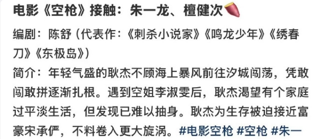 网传俩人合作出演《空枪》,双方因为双男主和谁一番交流起来了,朱一龙好歹是金鸡和百花双料影帝,85生电影成绩第一,90生电影实绩这边,王一博和张艺兴都更强,所以如果一定要合作,那肯定还是朱一龙一番。