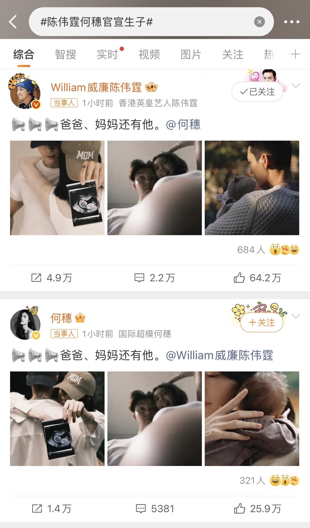 这一下真出名了。 陈伟霆在即将再次翻红的关口, 直接官宣当爸爸,还跳过了结婚