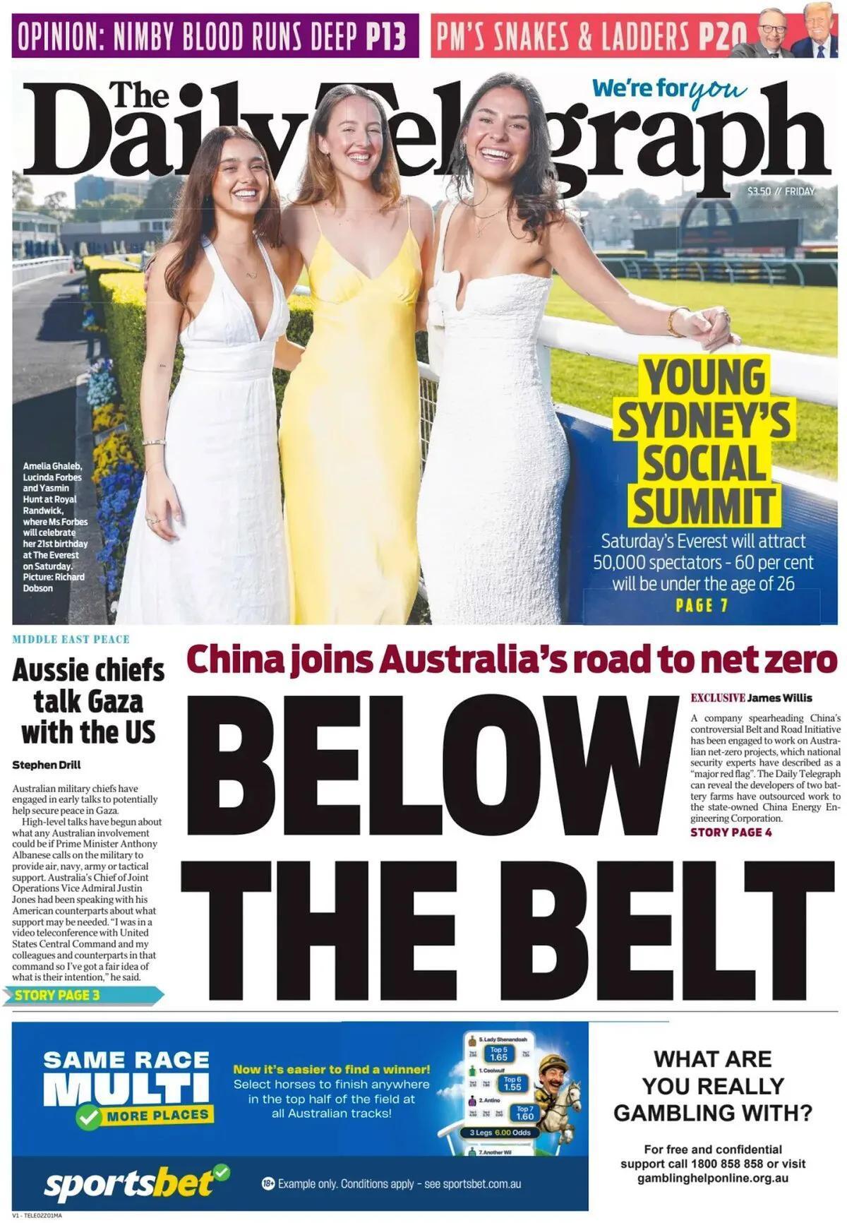 澳大利亚充满都是意识形态,只要是中国产品,中国公司,中国设备,中国的技术都会被泛化政治,视为“国家安全”。 澳大利亚《每日电讯报》头版报道称,一家在中国的“一带一路”倡议中处于领先地位的公司,已受雇参与澳大利亚的净零项目,澳大利亚国家安全专家称这是一个“重大警示信号”。 该报可以披露,两个储能电池农场的开发商已将工作外包给国有中国能源建设集团有限公司。 澳大利亚的净零项目主要指政府为实现2050年净零排放目标而推出的综合性政策措施,核心内容包括:澳大利亚政府于2025年9月宣布,到2035年将二氧化碳排放量较2005年水平减少62%-70%,并计划通过工业脱碳、清洁能源支持等措施推动转型。此前该国已承诺2030年减排43%,2050年实现净零排放。 ‌