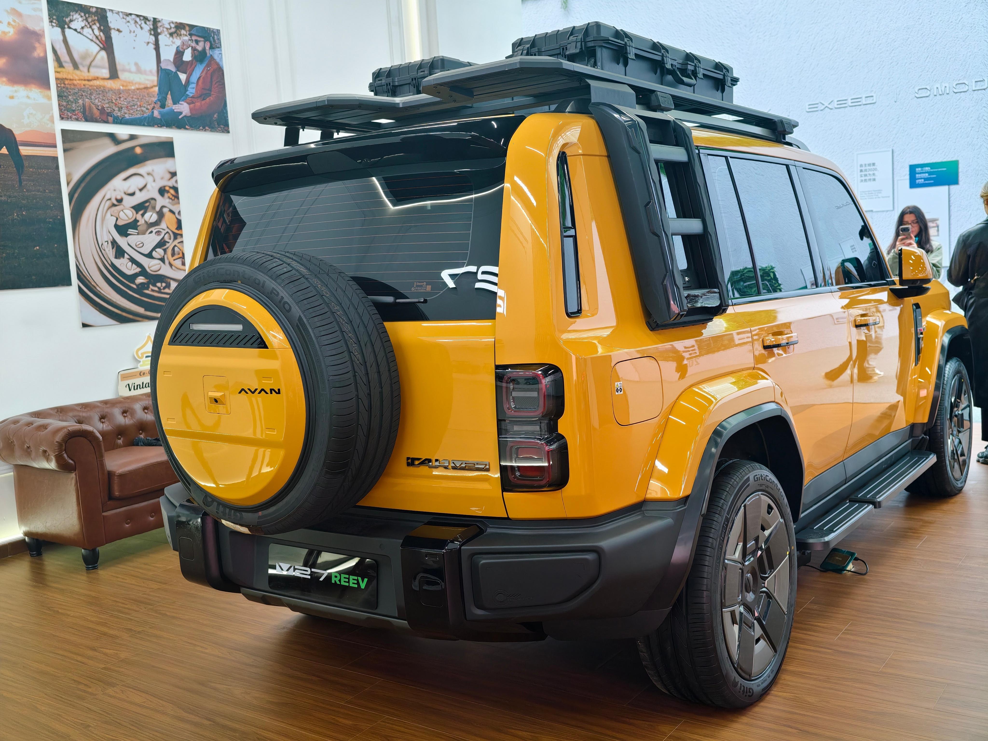 它提供了两种尾部方案:“小书包”储物箱和传统外挂备胎。选装备胎后车长能达到5055mm,气场更强。整车尺寸不小,轴距做到了2910mm,保证了车内空间。