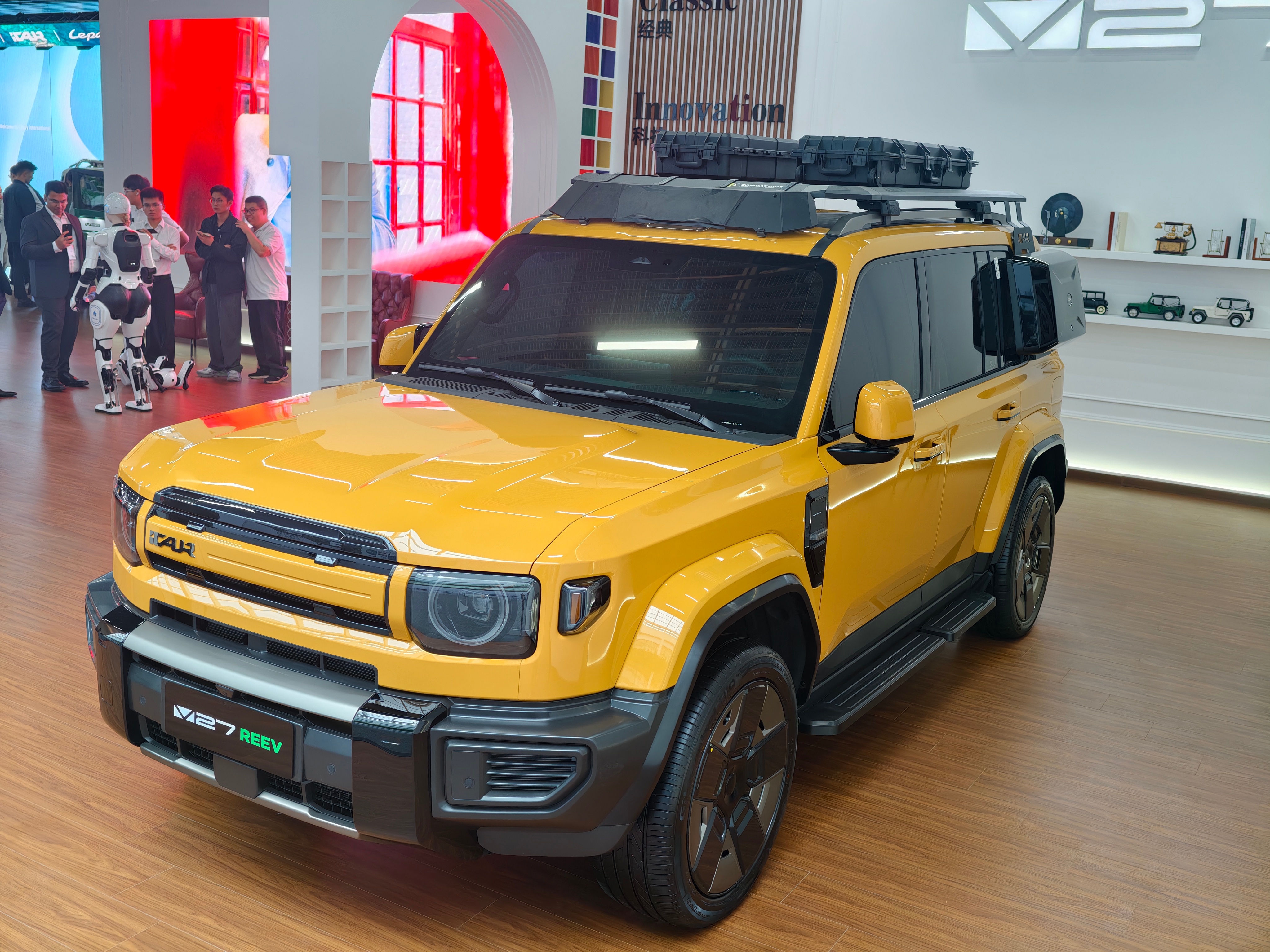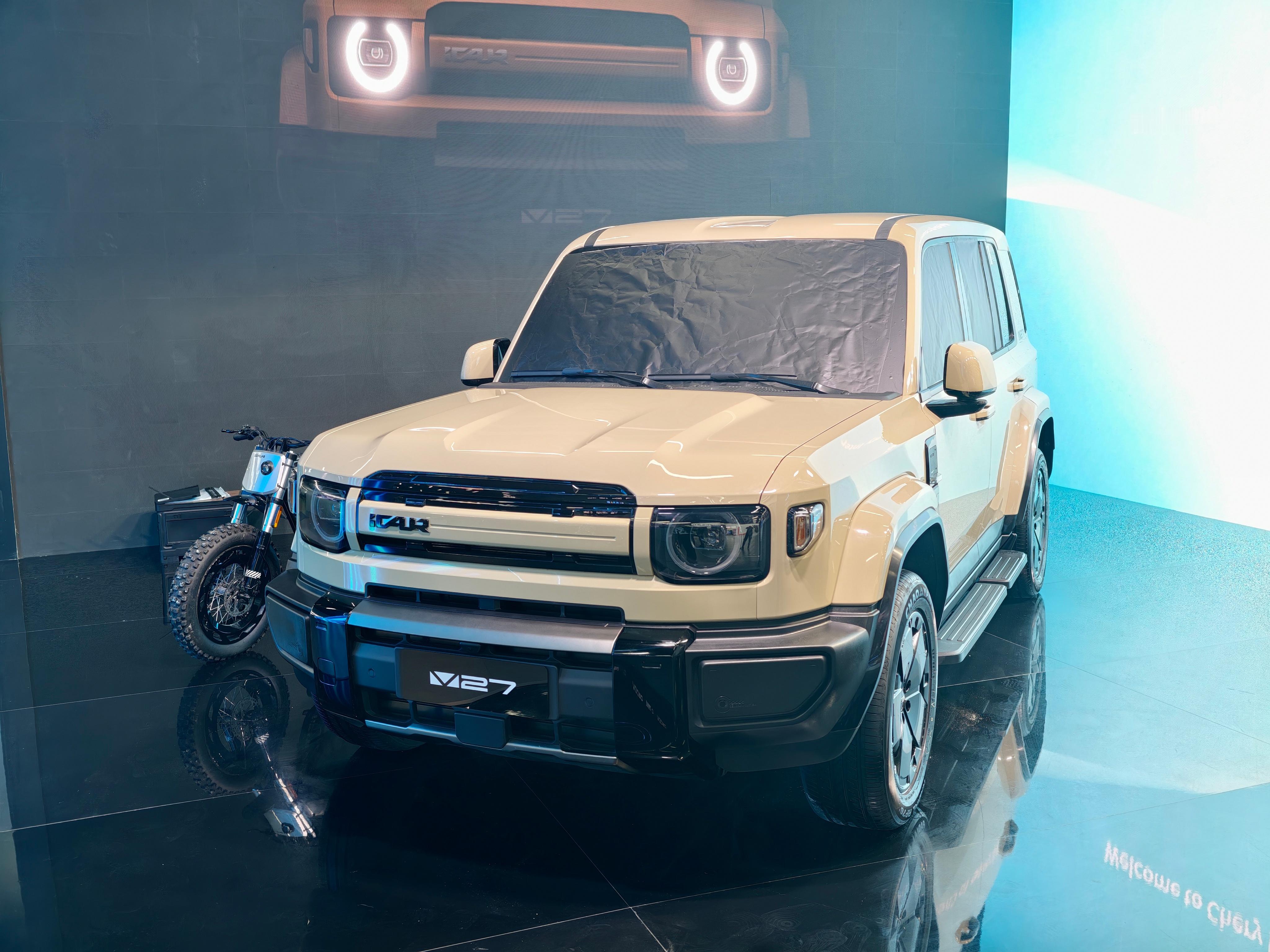 iCARV27双色实拍。作为iCAR的首款增程车型,定位在20万级的中大型硬派