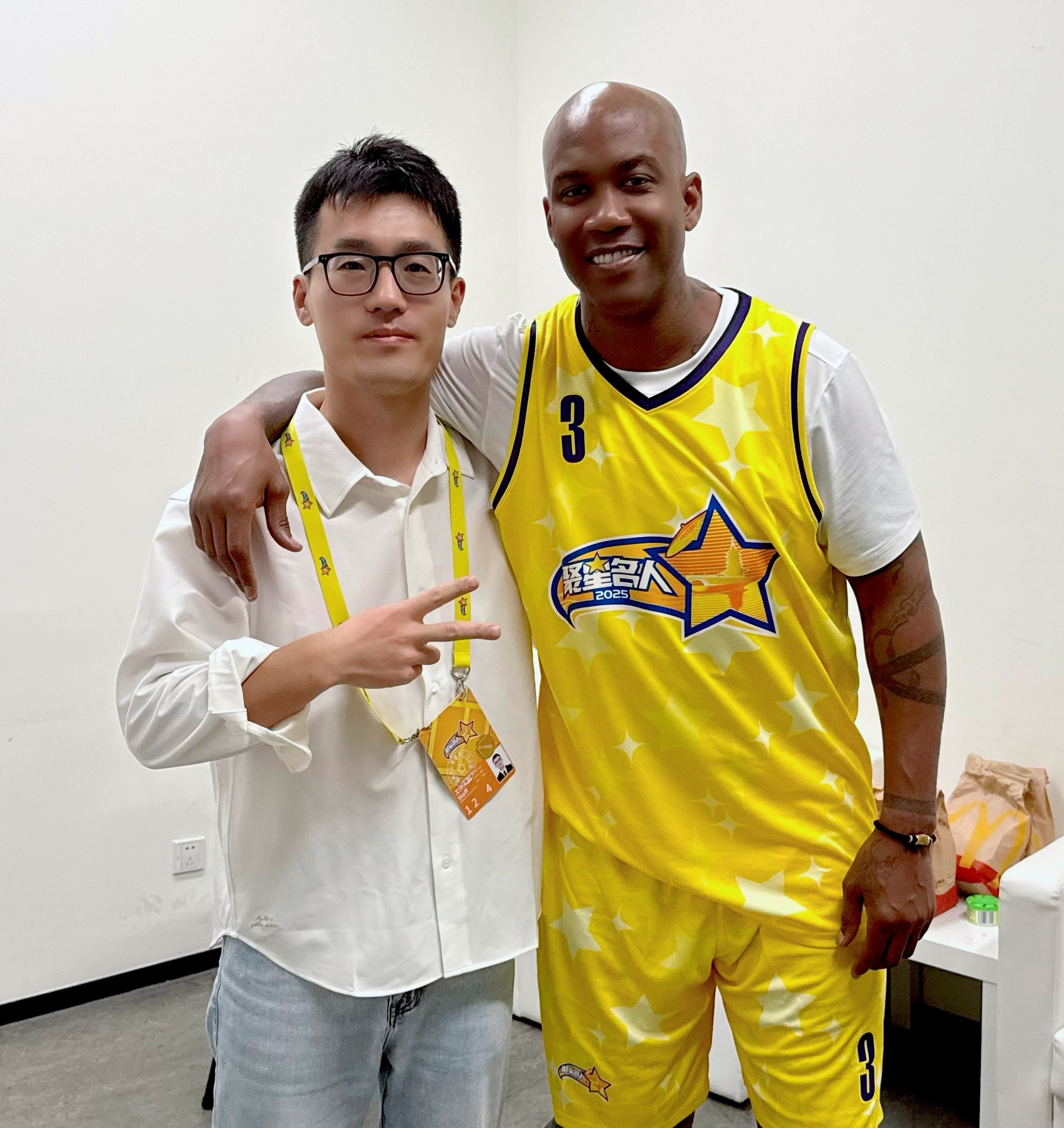 李汶翰[超话]NBA名人赛2025聚星名人赛李汶翰 和李哥拥有同款合影,老马人真的非常nice!