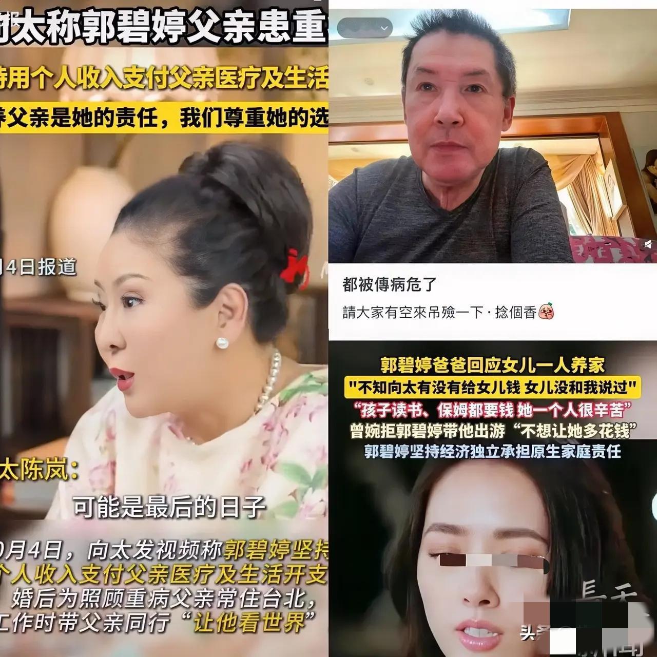 我有一种预感 郭爸爸这回是来真的了 不管是为了给女儿争一口气,还是说帮女儿斩断后路,他是真的忍不了,因为父爱如山! 就在向太捏造事实的时候,郭爸这个时候出面回应无疑是命中向太的命脉,远远比郭碧婷出来回应得好! 我觉得郭爸出来回应,肯定是看不下去自己的女儿被网友们所误解,所以他必须为女儿证明一下,在向家的待遇! 如果向太因为这个事责怪郭碧婷,刚好可以让他来劝离得了,自己的女儿不容许别人来欺负,还不如回到自己的身边,继续让老父亲宠爱! 可以说这一回应,郭碧婷真的该有底气让她选选后面的路!