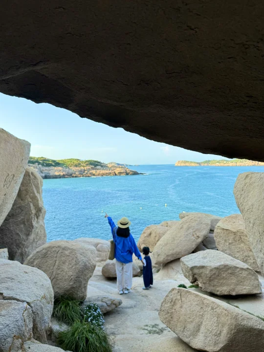 2️⃣大沙岙沙滩:有少量贝壳🐚,沙子很细,如果要拍美照记得提前备好贝壳拍照📷!这里适合亲子游玩,旁边也能看落日!夏天还能看到“蓝眼泪”!!!