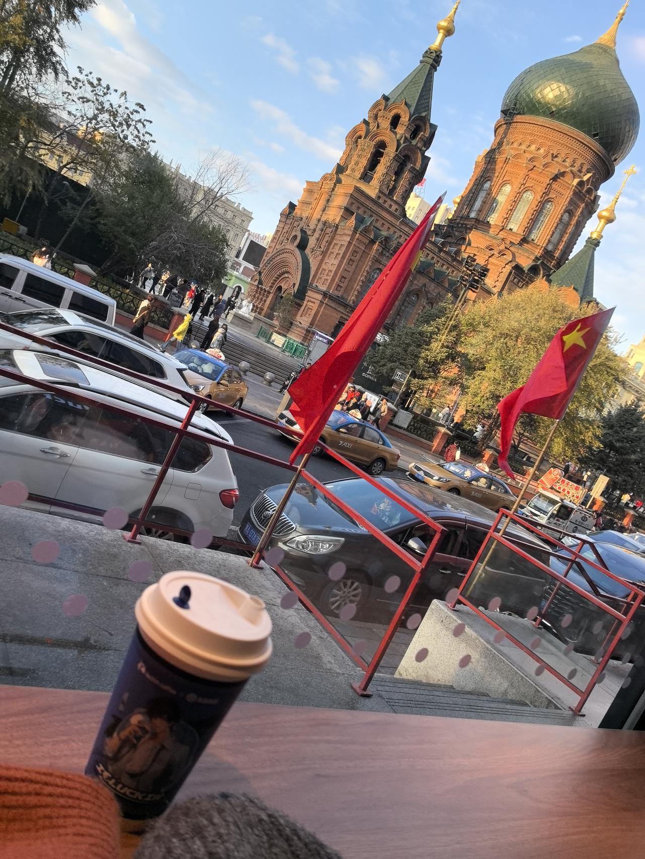 哈尔滨,圣.索菲亚教堂。 刚才忽然飘起了小雪,现在又放晴了… 这杯瑞幸咖啡太值了。[笑][笑] 索菲亚公教堂 索菲亚夜景 索菲亚广场 圣.索菲亚