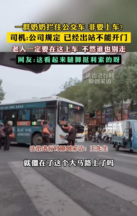 “胆子真大!”10月17日,湖南湘潭一男子早上开车外出,看到一辆公交车停在路中间,本以为车辆出了故障,可开过去后才发现,原来车被几名老人拦了下来!老人以腿脚不便为由,非要在这里上车,司机:公司有规定,不到站不能开门。 10月17日早晨,湖南湘潭一辆公交车在早高峰时段被几名老人拦停在道路中间,原因是老人们到站稍晚,车辆已驶离站台,她们便站在车前要求司机开门上车,司机表示公司规定不到站不能开门,双方僵持导致后方车辆排起长队。 这样的场景其实并不罕见,去年河北保定有老人因没人让座,拦停公交车长达两小时,柳州一对老年夫妇错过公交后,向车轮投掷篮子、拍打车门强行拦车,差点因司机紧急刹车发生意外。 公交车"不到站不停车"的规定,核心目的其实是保障所有人的安全,车辆在非站点停靠,不仅容易引发追尾等交通事故,乘客上下车时也面临被过往车辆撞到的风险,这个规定保护的不只是其他乘客,也包括拦车者自己。 从司机角度看,违规停车可能面临罚款甚至被辞退,一位公交司机曾在采访中提到,每次有乘客要求违规停车时都很为难,不停会被投诉服务态度差,停了又要承担安全责任和处罚,这种两难处境,其实反映出规则执行中的现实困境。 不过也要看到另一面,曾有媒体报道,个别司机看到站台是老人候车就不停车,或者因为老人使用免费卡,有空座也不让坐,这些做法确实容易激化矛盾,让老年乘客感到不被尊重。 很多城市为老年人提供了免费或优惠乘车政策,比如肇庆规定60周岁以上老人可免费乘坐城区公交,岳阳、长沙等地也有类似政策,这本是社会对长者的关爱,但善意需要规则来保障,才能让政策长久运行下去。 一些城市已经在探索更精细的管理方式,上海、成都等地通过错峰优惠,鼓励老年人避开早晚高峰出行。 还有城市给老人发放交通补贴而非全免,让他们根据实际需求选择出行方式,这些做法在保障老年人权益的同时,也缓解了高峰期的拥挤压力。 换个角度想,如果每个人都因为各种理由要求司机违规停车,公共交通系统就没法正常运转了。 赶时间的人会说"我要迟到了",买了菜的人会说"东西太重走不动",每个人都觉得自己的情况特殊,最终受影响的是所有乘客。 这次事件中,老人们可能真的腿脚不便,错过这班车要等很久。 但站在马路中间拦车的做法,风险远大于多等十几分钟,如果真的行动不便,可以提前出门预留充足时间,或者选择其他出行方式。 对司机来说,遇到这种情况也需要更多沟通技巧,可以耐心解释规定的原因,告知下一班车的时间,而不是简单拒绝了事。公交公司也该加强培训,让司机既能坚持原则,又能体现人文关怀。 公共交通是所有人共享的空间,维护它的秩序需要每个人的配合,老年人的生活经验和阅历,本该成为年轻一代学习的榜样,而年轻人也应该多一份理解,在力所能及时给长者提供帮助。 你在乘坐公交时遇到过类似的情况吗?或者有什么好的解决办法?评论区说说你的看法和建议。 信源:法治进行时