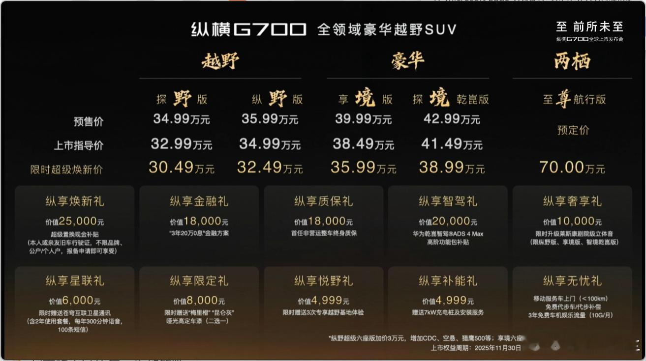 左右观车 纵横G700上市,指导价32.99万元起,限时置换价格30.49万元。 ​​​