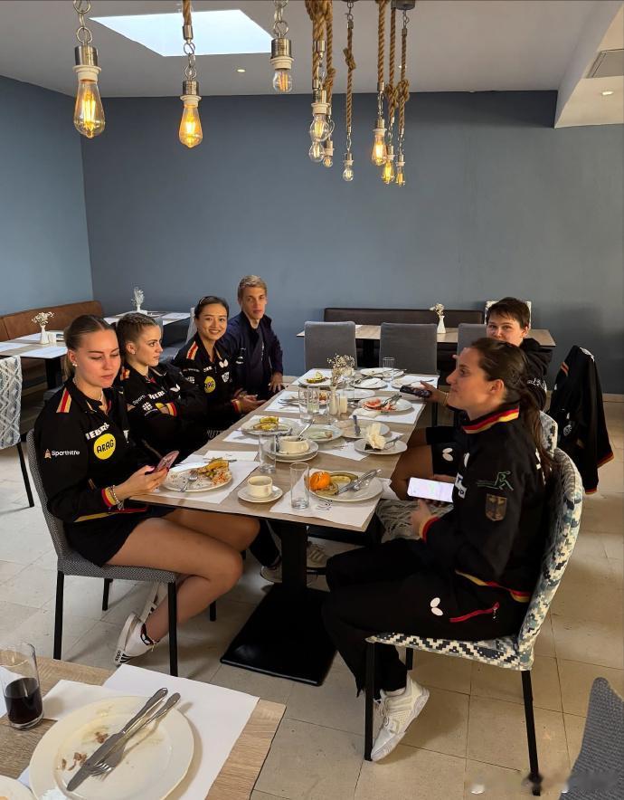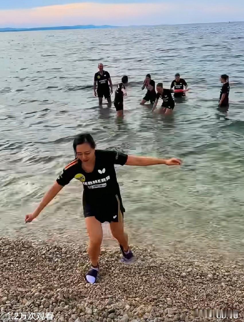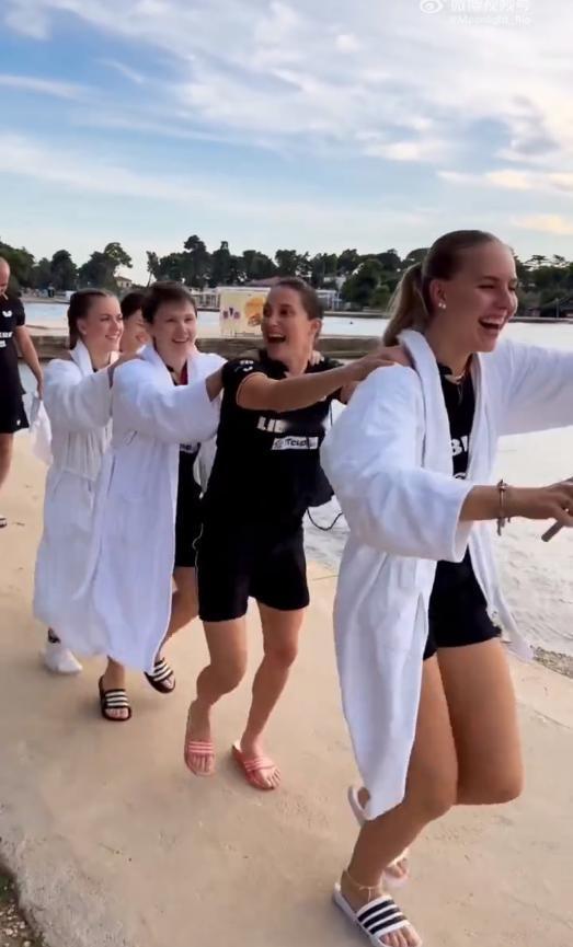 德国队获得2025欧锦赛女团冠军,夺冠后的德国女队在领奖时大家还一起跳舞,氛围真的很好。看到外协的团队夺冠后,大家都很开心的庆祝,有网友说原来夺冠后可以嘻嘻哈哈啊。 这次欧锦赛,韩莹没有参加,德国队的小将考夫曼表现不错,在颁奖的时候大家让考夫曼拿奖杯,欧锦赛的奖杯是真的很漂亮呢。德国女队夺冠后,德国乒协发文:先补充点能量,打完激烈的决赛得好好吃一顿。看到安东卡尔伯格也在那里陪着万远,两个人订婚后,就一直在一块,看着很甜蜜啊,万远也很漂亮,郎才女貌的一对,德国女队夺冠,安东也很开心啊。 吃完饭后,德国女队教练带着队员们去海边庆祝,大家一起在海里洗澡了,看到出来女孩们都特别特别的开心,看到万远先从海里出来了,走上岸边,看到大家都披着浴袍,然后手搭肩一起唱歌,外协球员夺冠都特别开心,大家是又唱又跳的,氛围特别好。亚锦赛港队男团拿到亚军,他们回到香港后中国香港乒协还为他们准备了鲜花,再看看我们国乒,虽然是拿了两个冠军回来,但是一点仪式感也没有,也没人去接机,更没有鲜花。