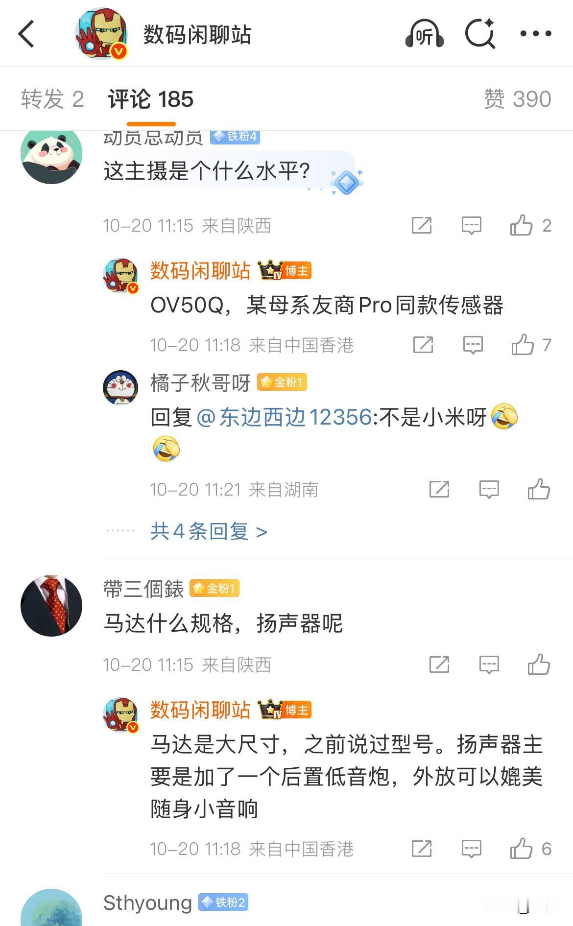 “声音媲美随身小音响” 站哥放出REDMI K90 Pro Max摄像详细数据! 就在刚才,站哥一口气把这个手机摄像的套件,以及相应的参数都发出来了,他使用的是光影猎人950主摄,50Mp 1/1.31",1G+6P玻塑混合镜头,5X潜望镜,支持10X混合变焦,红米首次上超大底主摄+潜望长焦! 同时他表示,这个手机的主摄水平能够达到OV50Q,也就是某母系友商Pro同款的传感器水平。 而且大家都比较关心这个手机的音量以及他的低音炮效果怎么样,他明确的表示,这个手机的声音是很大的,所以他的外放效果可以媲美随身的小音响[捂脸] 这样看起来这个手机有一点老年机的感觉了,主打的就是一个声音大,这你受得了吗?