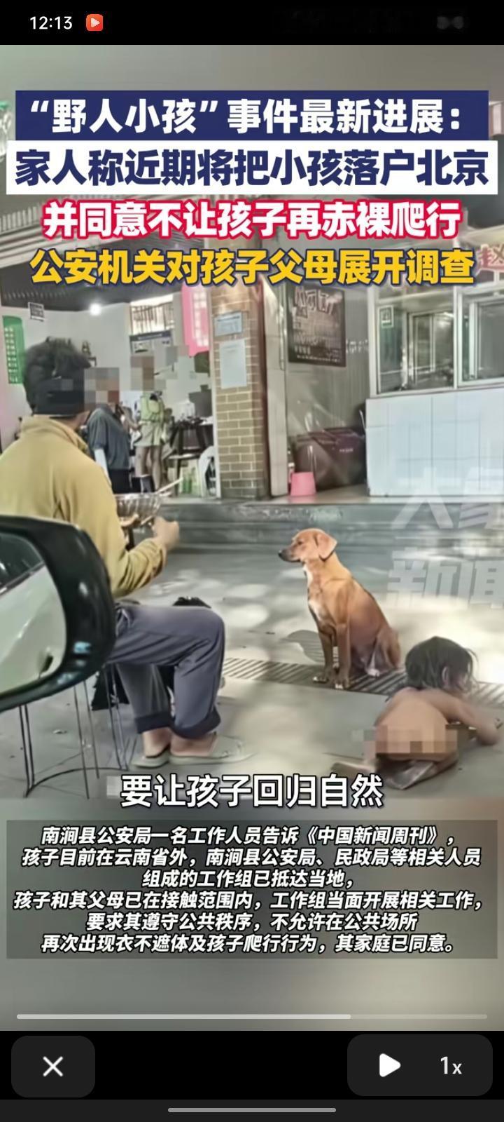 当“研究生妈妈”把孩子养成“狼孩”,这不是教育,是对生命的渎职 刷到那孩子光着身子在地上爬的视频时,我后背直发凉。更让人咋舌的是,孩子妈是研究生学历,却偏要把娃往“野兽化”养——自己衣着暴露,让三岁的孩子赤身裸体模仿动物爬行,家里还养着一大群狗,美其名曰“回归自然”。这哪是教育,分明是拿孩子的人生当“实验品”。 “回归自然”从来不是借口。真正的亲近自然,是带孩子去公园看蚂蚁搬家、去山里听鸟叫,而不是让他在大马路上光着屁股学狗爬。3岁正是孩子建立自我认知、学习社交的关键期,这时候把他和人类社会隔绝,让他学动物的行为模式,等于亲手掐灭他融入世界的可能。就像印度那两个狼孩,从小脱离人类环境,后来连人话都学不会,早早夭折了。这妈妈难道没听说过? 更离谱的是父母的“双重标准”。自己知道穿裤子遮体,却让孩子在冰凉的地上爬;拿着高学历,却用“这是我们的生活方式”当挡箭牌。村干部劝、民警说、妇联去沟通,全当耳旁风,就俩字:“不配合”。这哪是坚持理念,明明是偏执和自私——把自己的“怪诞”强加到孩子身上,完全不管孩子未来能不能正常上学、和同龄人交流。 孩子不是父母的私有财产,更不是用来践行“奇葩理念”的工具。家庭教育促进法明明白白写着,父母得保证孩子“身心愉悦,养成良好生活习惯”。可这对父母呢?孩子没户口、没打疫苗、没接受过正常教育,连最基本的穿衣吃饭都成问题,这哪是养孩子,简直是耽误孩子一辈子。 真希望相关部门能硬气点,别让“家事”成了孩子的灾难。毕竟,孩子的童年只有一次,被这样“瞎折腾”,可不是一句“回归自然”能弥补的。你说,这对父母到底是怎么想的?