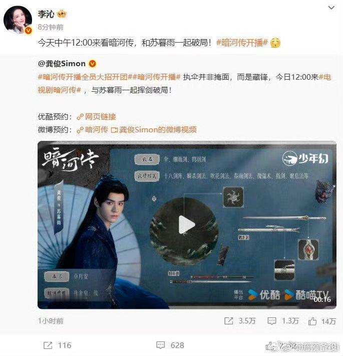 李沁上线为龚俊《暗河传》打call,花少里默契十足的两人,剧外依然是好伙伴,友情