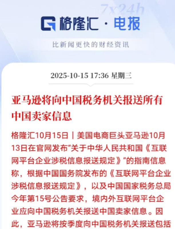 [微风]亚马逊向全球中国卖家发出通知,要求在10月31日前,把第三季度的交易明细原封不动地报给中国税务机关。不管你是在美国站卖几件T恤,还是在欧洲站做整套家居,身份证号、成交的订单数量、具体赚了多少钱、给平台交了多少佣金,都要全盘托出,想像过去那样藏着掖着,彻底没戏了。 这消息一出,跨境电商圈炸开了锅,卖家心里都清楚,这不是一次普通的数据收集,而是一次彻底的“拆墙行动”,国内外的信息壁垒正在被推倒。 其实,这背后是全球税务环境巨变的缩影。近几年,世界各国的税务信息互通越织越密,想通过设公司在避税天堂藏钱的老套路,早就不那么管用了。 中国从2013年加入《多边税收征管互助公约》,到2017年正式执行,再到和英属维尔京群岛、开曼群岛等地区签订信息交换协议,跨境资金的去向已不再是秘密。 现实中的例子早已验证了信息互通的威力。海南儋州税务部门,靠数据对比发现一家企业有3.48亿美元的海外运输支出,却没履行代扣代缴税款的义务,最终让它补交了9千多万元税款。过去这种跨国交易查证几乎是不可能的事,如今有了数据共享,再隐瞒就等于自找麻烦。 亚马逊这次“帮忙”报税,也不是心血来潮。它自己就在税务问题上栽过大跟头。去年,意大利税务局直接冻结了亚马逊当地分公司1.21亿欧元资金,指控它的物流业务协助卖家逃税,还用虚假合同规避社保。 再早几年,法国税务部门查出平台上近九成卖家连增值税注册号都没有,其中四成的地址来自中国。这些卖家少缴税,商品价格比合法卖家低一大截,扰乱市场秩序,也让平台本身陷入监管高压。 有了这些教训,亚马逊算是彻底明白,继续放任卖家在税务上钻空子,最终要挨板子的还是自己。 与其被各国处罚,不如主动切断卖家的“灰色缓冲区”,把税务责任直接推回卖家手上,你的税你自己报,平台不替你背锅。 然而这一步让中国卖家站到了命运的分岔口。要知道,中国卖家在亚马逊上的份量非常重,一半以上的活跃卖家来自中国,仅深圳就聚集了十多万跨境电商企业,每年贡献的销售额惊人。面对越来越严密的监管,原本的“自由生长”模式,已走到尽头。 其实,对于守规矩的卖家来说,这更像是一次洗牌的机会。监管部门此前最大的问题,就是难验证跨境交易的真实性,很多人报的出口数据和平台销售额完全对不上,利用的就是境内外信息脱节。 但现在,情况在改变,比如江西九江上线的“云上跨境智能系统”,直接和亚马逊后台打通,一个订单从生成到回款,都能一键查到。 当地企业弦界科技,以前申请出口退税要等半年,如今三天就到账,合规成本还降低了不少。透明化不仅没有拖累反而让有实力的玩家更快周转资金。 但对那些靠信息不透明吃红利的人来说,这几乎是灭顶之灾。不报或虚报数据的风险极高,尤其欧盟市场,查验力度已经大幅提升,海关开箱比例从5%涨到22%,清关时间拖到两周甚至更久,一旦落到税务“黑名单”,整个市场的大门都会被关上。 国内的处罚同样狠,不仅补税,还要交高额罚金和滞纳金,往往比利润还多,等于是白干一场。