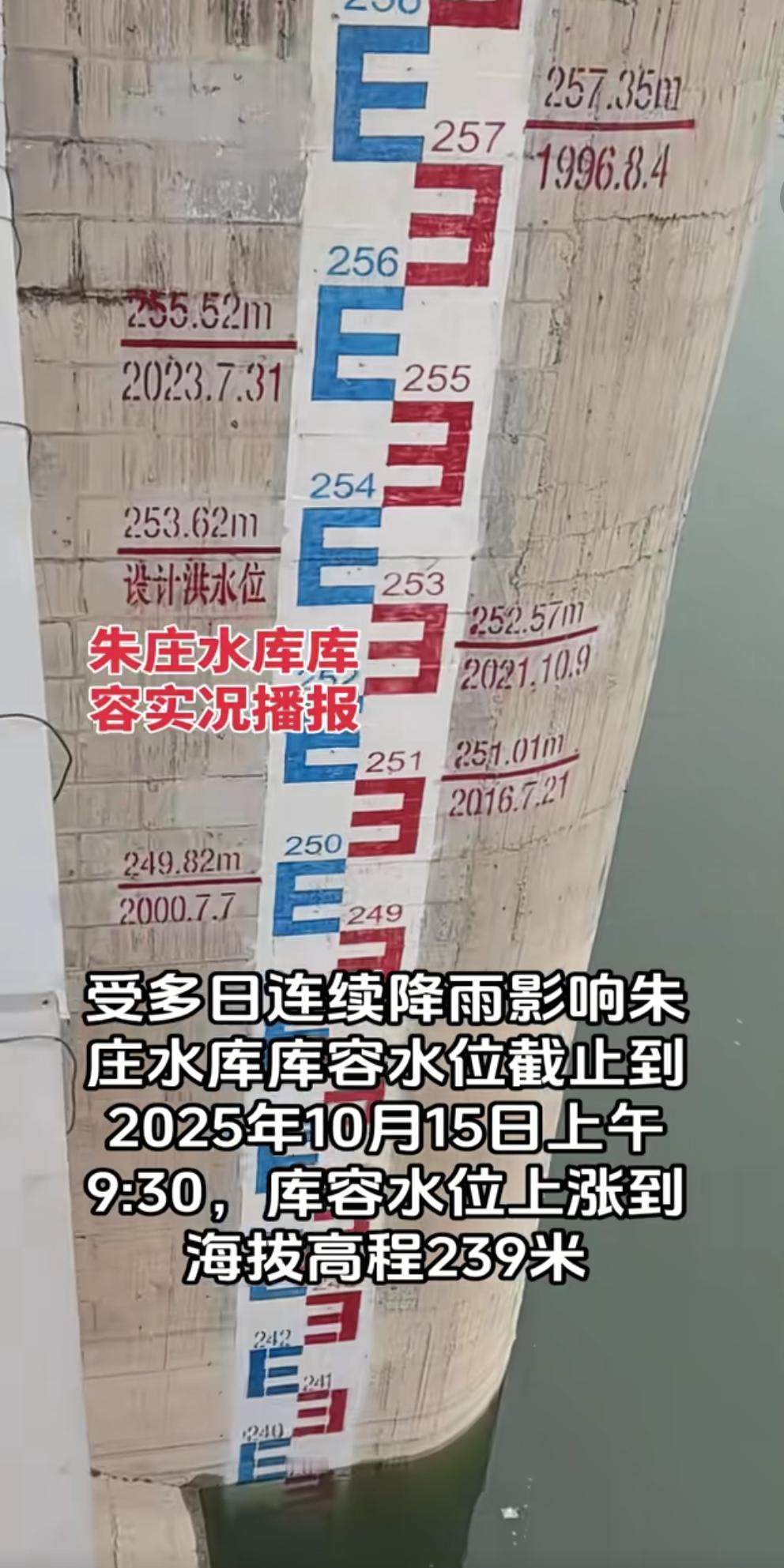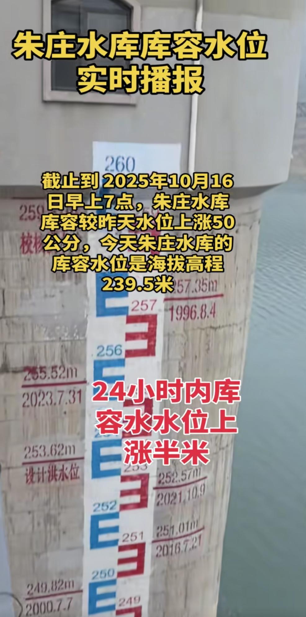 朱庄水库位于河北邢台沙河市綦村镇朱庄村,是重要水利枢纽。截止10月17日,水位海拔239.5米,而96年8月4日257.35米是历史最高水位,那年最大入库洪峰流量达9760立方米/秒。 这座水库1971年始建,81年主体完工,控制流域面积1220平方公里,总库容4.162亿立方米。它以防洪灌溉为主,还能发电和供水。这里也是钓鱼好地方,水域开阔,平均水深约30米,有鲤鱼、草鱼等多种鱼,4 - 10月适合垂钓。水位变化见证着岁月,也影响着周边生态和人们的生活。