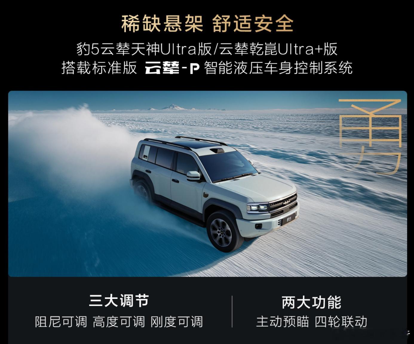 底盘部分,豹5云辇版本搭载云辇-P智能液压车身控制系统。