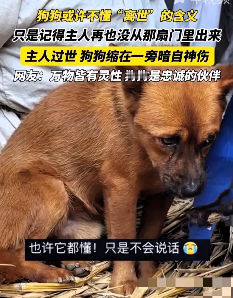 “彻底解释不清了!”山西一老人去世,哀乐一响,家里的狗狗找个角落低下头暗自伤神,它或许不懂离世的含义,但是从它的眼神和表情,任谁看了都觉得透着股悲伤劲儿。 虽说它不会说话,但感觉它心里清楚,主人再也不会从那扇门走进来了。网友们瞧见,都说狗狗眼里满是伤心。 这只棕褐色小狗是老人收养的,老人对它就像对自家孩子,亲自做饭喂食。如今老人走了,小狗也跟着难过。视频里,小狗眨巴着眼睛,垂头丧气,眼眶边还有眼屎和疑似泪痕。 家属把视频发到网上,网友们议论纷纷。有人觉得可能是这几天家里吵闹,影响狗狗休息,才流眼泪有眼屎。 但也有网友回忆,自家爷爷收养的流浪猫,在爷爷生病到去世期间,不吃不喝瘦得皮包骨。看来啊,动物也是有感情的。 至于这小狗到底为啥这样,我看也别非得刨根问底了,大家说呢?