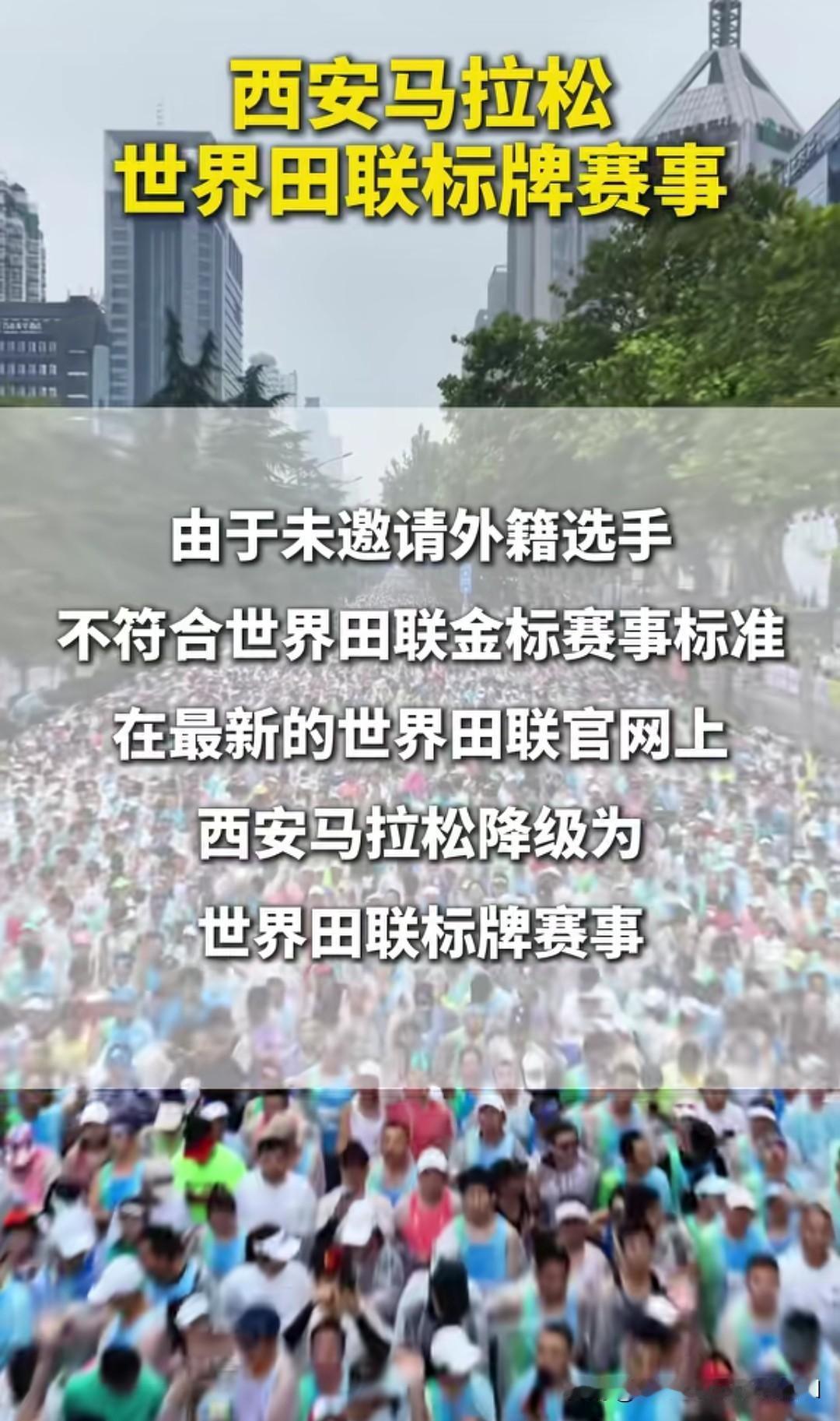 热烈祝贺西安马拉松降级! 西安马拉松由金标降为普标。 原因是达不到金标要求 ——