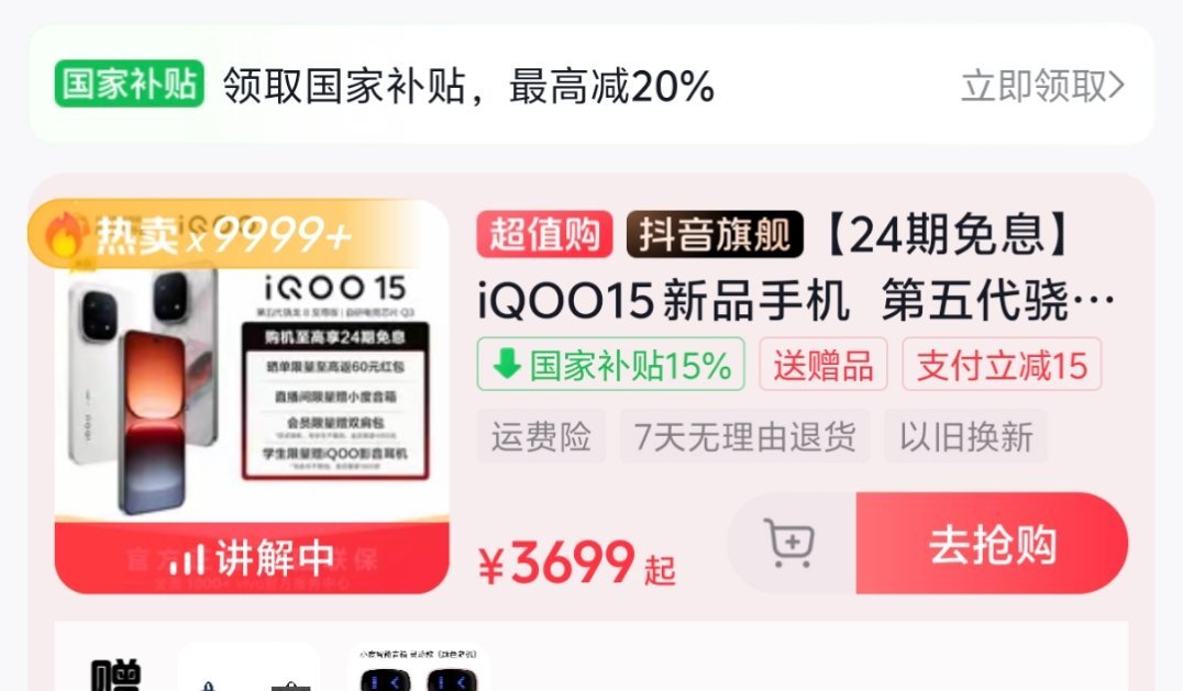 iQOO15某平台直接9999+了,而且能直接吃国补。