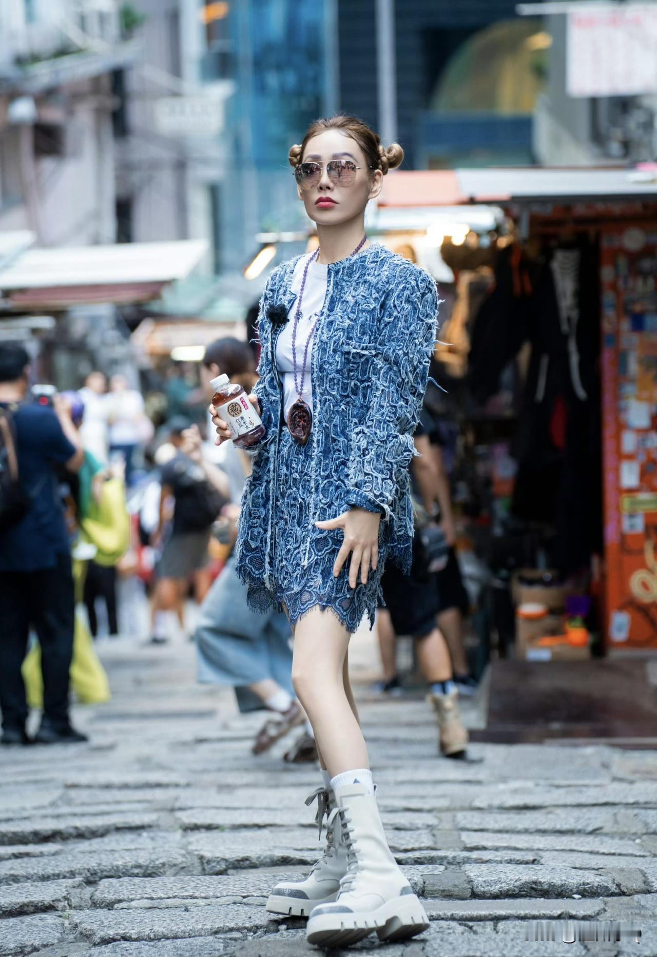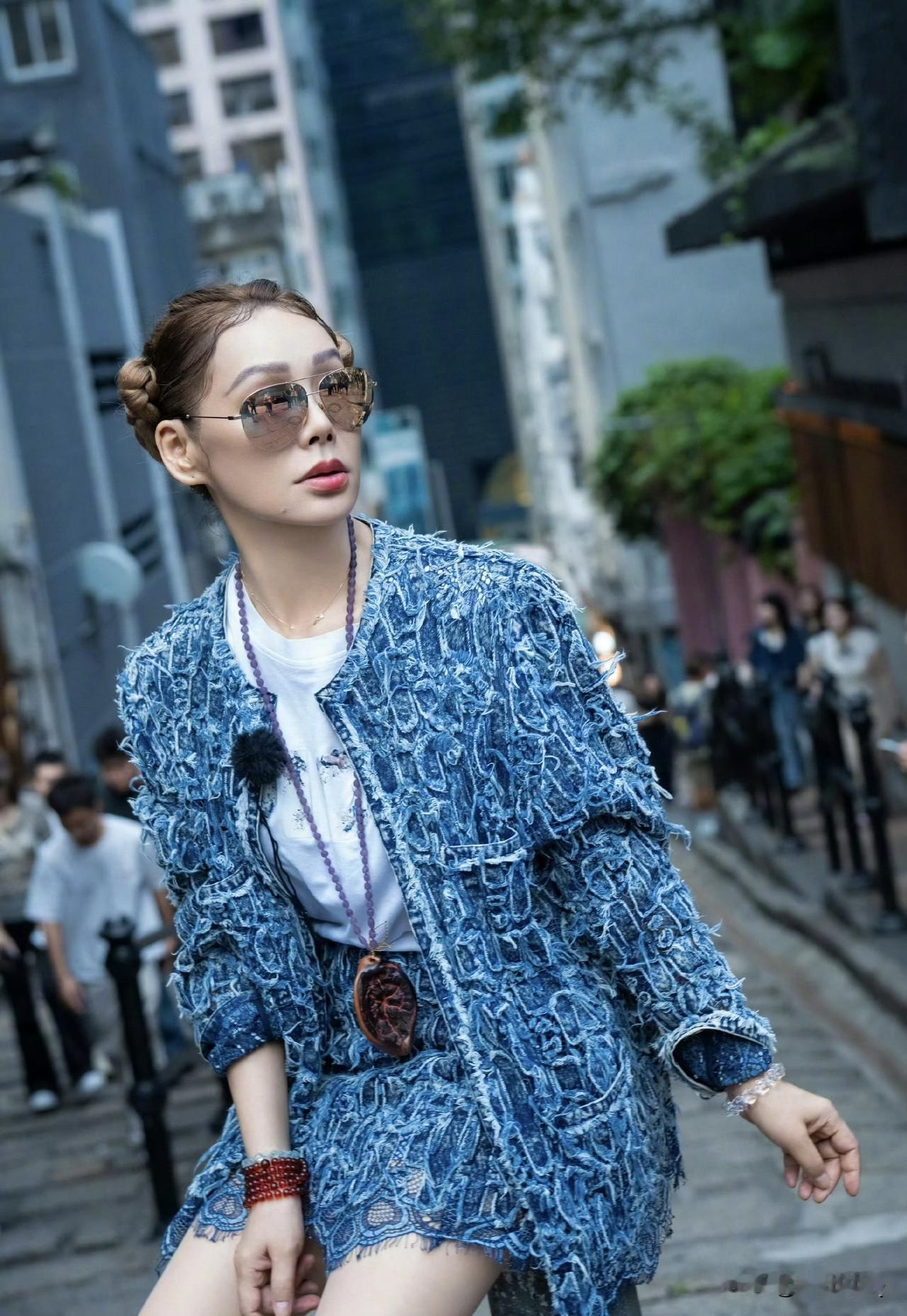 原来宁静的时尚感这么强,53岁的她头扎哪吒头竟然有一丝丝俏娇感。