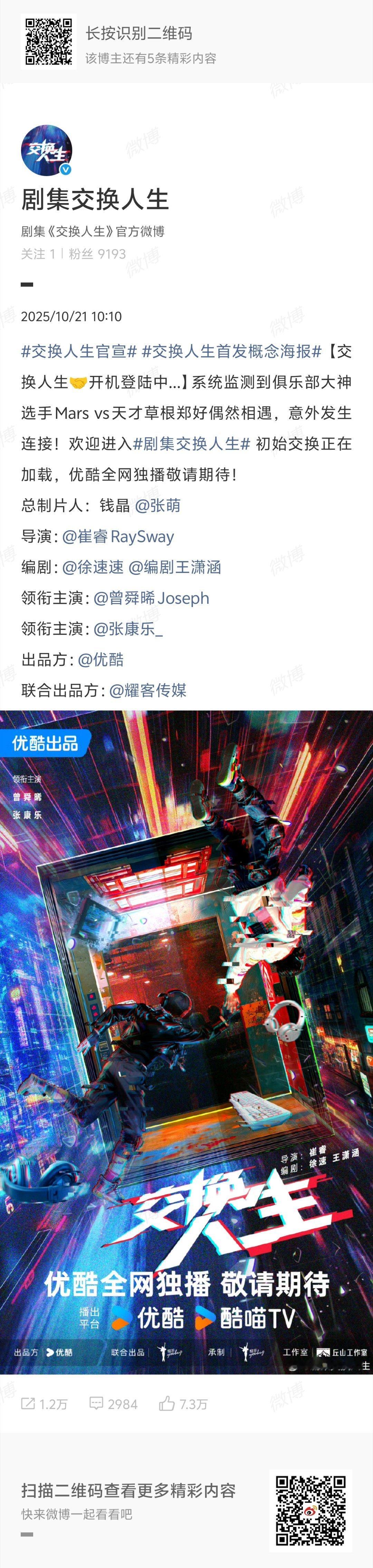 交换人生官宣曾舜晞,张康乐以及概念海报