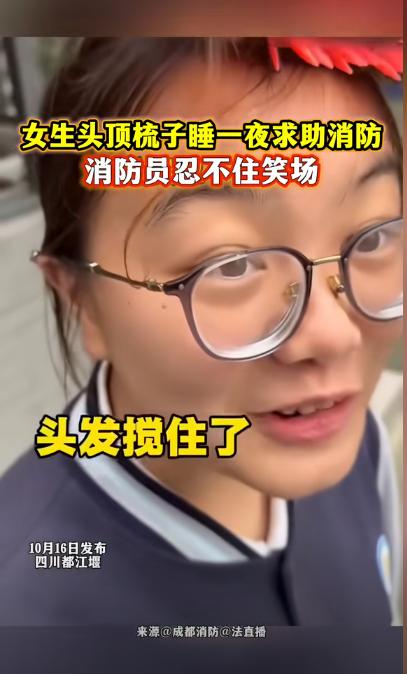 笑不活了!四川都江堰,女子找到消防员求助,说自己头发被东西缠住了,取不下来,消防员小哥哥抬头一看,没忍住直接笑了出来。   在四川都江堰,有一把特别普通的塑料梳子,没料到开启了一段特殊的经历,它原本就是日常用的小东西,结果变成了让人既觉得好笑又没办法的头顶 “麻烦”,最后还成了网上讨论的热点。   这事儿不只是头发被缠住那么简单。   事情的起因是,小王(化名)在晚上睡觉前梳头发的时候,不料梳子直接就与刘海纠缠起来,本来是想把头发梳顺,没想到反倒成了越使劲弄缠得越紧的麻烦。   小王弄了整整一个小时也没把梳子弄下来,甚至缠的更厉害了,最后无奈之下,她只能选择顶着这个特殊的 “东西” 睡觉。   次日醒了之后她先去了专业的理发店,之后又去医院求助,可不管是理发师还是医生,面对这把跟头发死死缠在一起的梳子,都没什么办法。   虽然说剪掉是一个简单粗暴又好用的办法,但对于爱美的小王来说又不想剪掉头发,平时能用的解决办法全不管用,这把梳子彻底成了难题,逼着她只能去找不常规的帮助。   后来,这个 “头顶上的麻烦” 又去到了消防站,这时候梳子又有了新作用成了个特别的观察点,几名消防员看到了之后忍不住笑了起来,第一次见这样的情况。   不过笑完之后,消防员立马就拿出了专业的姿态,为了不让女士的头发受损,消防员拿出了液压剪和特大号镊子,他们先拿纱布仔细护住女士的头皮,接着所有人都集中精神,连呼吸都放轻了,一根一根地剪断坚硬的梳齿。   整个过程用了十几分钟,消防员很细小心地把缠在梳齿间的头发挑出来,最后头发没受一点损伤,事情办完后,他们还特意提醒女士,以后梳头别太着急。   这事儿在网上传开后,大家有各种不同的反应,网友开玩笑叫这梳子 “年度最硬核发饰”,一边调侃,一边也佩服女士能顶着梳子睡觉的忍耐力。   但也有一位网友在下面评论说,在小学的时候的她也遇见过这样类似的情况,那时候梳子只是缠到了发尾,所以直接就给剪了。     那么通过这件事情也让我们明白,身边的英雄们既能面对危险,也能温柔地帮人解开缠在头发里的梳子,这才是他们最真实、最让人感动的样子。   对此,你还有什么看法呢? (信息来源 :河北新闻广播 )