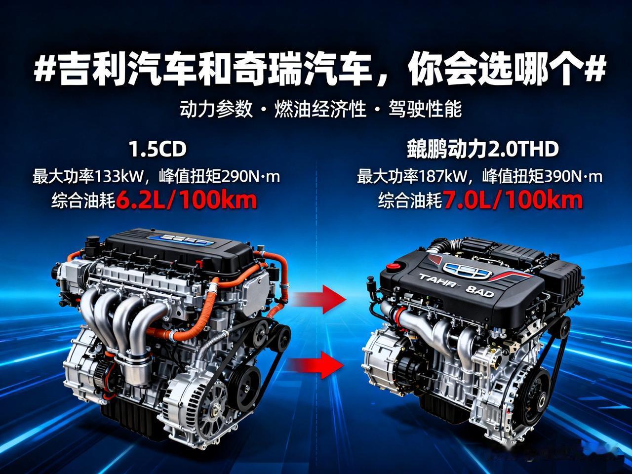 先聊核心的“三大件”:奇瑞是出了名的“理工男”,发动机技术真能打!ACTECO系列连续16年拿“中国心”十佳,鲲鹏混动热效率高达44.5%,实测市区馈电油耗才5.3L,开一公里成本4毛钱出头。更狠的是全系发动机终身质保,首任车主开10年都不用愁大修,身边开艾瑞泽8的朋友说“5年只换过机油滤芯”。但奇瑞的短板也明显,内饰设计偏老气,4S店网点比吉利少,部分车型还有变速箱顿挫的小抱怨。 再看吉利:这几年靠颜值和配置圈粉无数!收购沃尔沃后,CMA架构车型(比如星越L)的安全和底盘调校直追合资,三联屏内饰、BOSS音响、L2级智驾这些配置拉满,年轻人一眼就爱住。但车主吐槽集中在两点:车机卡顿(哪怕是8155芯片也偶发死机),2.0T车型市区油耗能到12个,开着有点“费油”。不过吉利胜在服务网点多,售后回访及时,买车保养都方便,3年保值率54.1%也比奇瑞的51.5%略高。 给纠结党划重点: ✅ 选奇瑞:预算10-15万,追求务实家用、看重省油耐用的朋友。比如瑞虎8 PRO动力强(254马力),风云T9满油满电能跑1400公里,长途无焦虑,适合经常跑高速、家里有老人小孩的家庭,性价比直接拉满。 ✅ 选吉利:喜欢颜值和科技感,市区通勤多的年轻人。星越L的大空间、银河L7的智能配置,开出去有面子还好用,就是要接受市区油耗偏高和车机偶尔卡顿的小毛病,毕竟鱼和熊掌难兼得。 其实俩品牌都是国产良心,没有绝对的好坏,只有合不合适:务实派选奇瑞,图的是技术扎实、用车省钱;潮流派选吉利,冲的是设计精致、配置贴心。J.D. Power 2024质量报告显示,俩品牌百车故障数都低于行业平均,可靠性不用慌。 你选吉利还是奇瑞?是看中发动机技术还是智能配置?评论区说说你的理由。