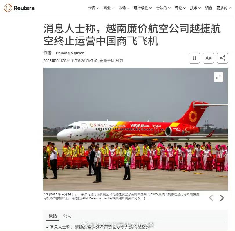 路透社又准备唱衰中国国产飞机! 因为这两款飞机是半年的租赁期到了需要返回成都,在他们的嘴里就变成了越捷航空终止运营中国商飞飞机,这两架飞机本来就是湿租成都航空的飞机,租期到了不回去难道送给他们吗? 再者说了飞机还有维护保养工作需要做呢,不回去在越南也做不了。各位是怎么看的?欢迎评论区留言。