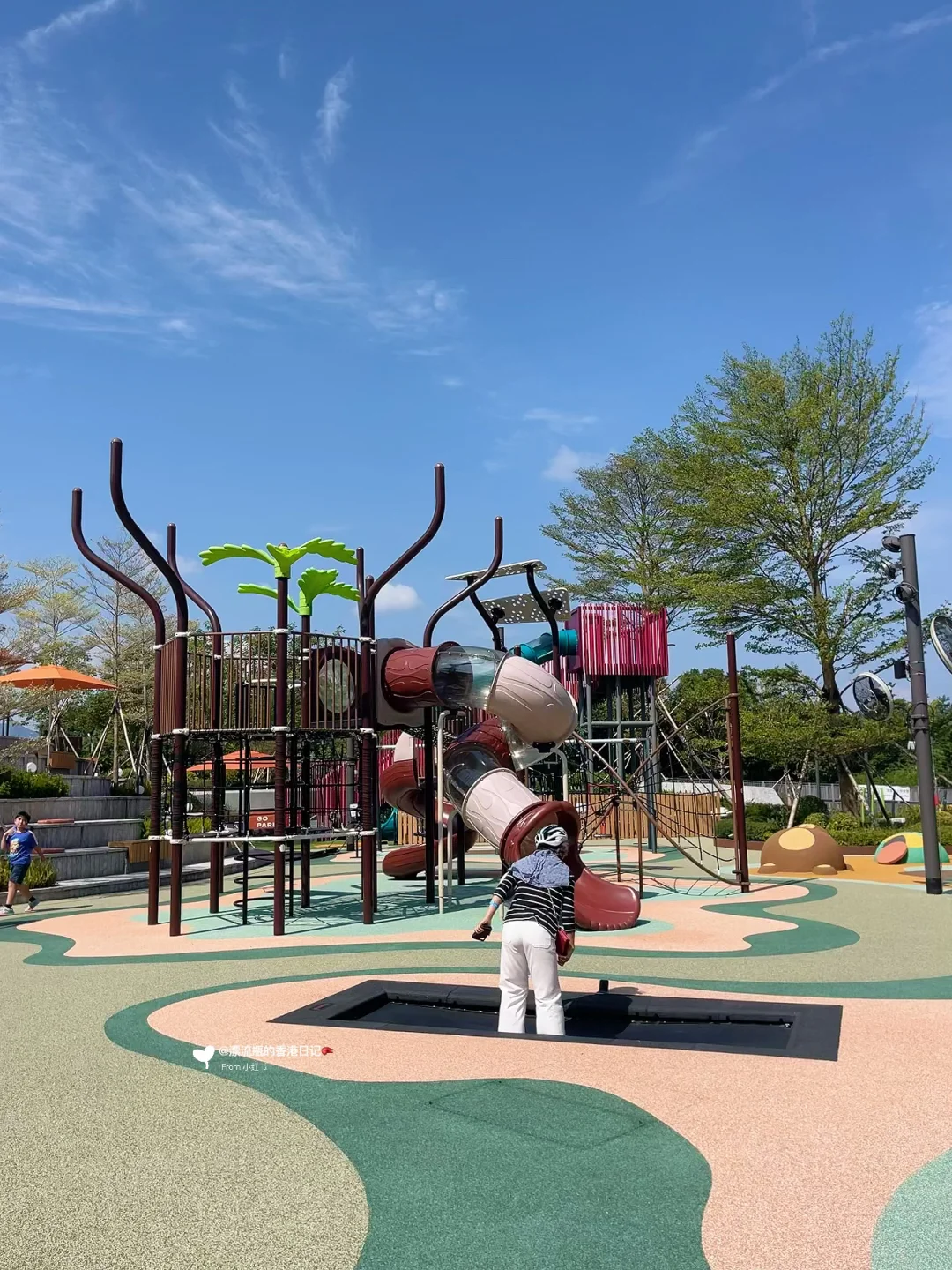 🎠历奇天地:不同年龄的都能玩,以森林历险为主题,10个游乐设施,包括7条滑梯、秋千、攀爬架、喷水装置等,必玩5.4米高的长滑梯