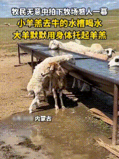 何其伟大!小羊羔跟着妈妈去喝水,可水槽太高导致小羊羔力不从心。羊妈妈见小羊羔喝不到水,于是自己站在水槽跟前,好让小羊羔喝到清澈的河水。 刚开始,牧民以为是小羊羔调皮捣蛋,爬到羊妈妈背上玩一玩,可后来羊妈妈站在那里一动不动,维持了近两分钟,牧民这才意识到这个羊妈妈何其伟大! 她自己没首先喝水,而是让小羊羔喝饱了,这才开始喝水。看到这一幕,真令人感慨万千。俗话说“鸭有反哺之义,羊有跪乳之恩”,这话没有一点毛病。 其实,动物和人一样,都有温情慈爱的一面,总是把最好的留给孩子,总是替孩子排忧解难,总想着让孩子越来越好。朋友们,是不是想起了妈妈对你的样子? 不妨这样,有时间回一趟老家,看看年迈的母亲,哪怕什么都不带,陪母亲说一说知心话就行。在此祝福:所有的妈妈年轻漂亮,生活幸福美满,日子红红火火!