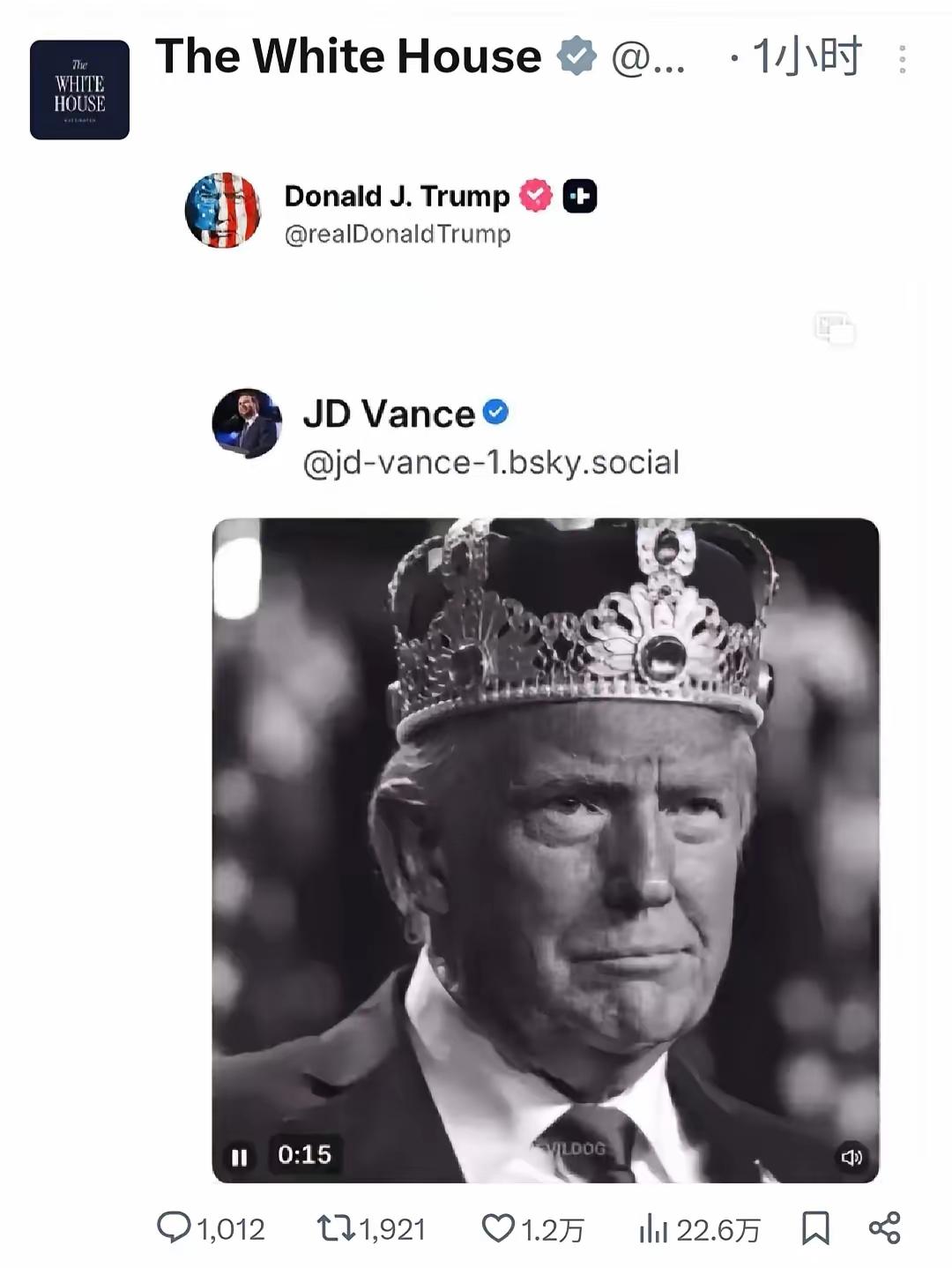 1782年,乔治.华盛顿严词拒绝了刘易斯.尼古拉上校让他当国王的劝进信。美国建成了一个制度较为完善的共和制国家。 2025年,唐纳德.特朗普转发副总统万斯发布的特朗普王冠像,同时美国700万民众上街反对“新王”。鬼才知道在“新王”统治下美国会变成个什么样的国家?